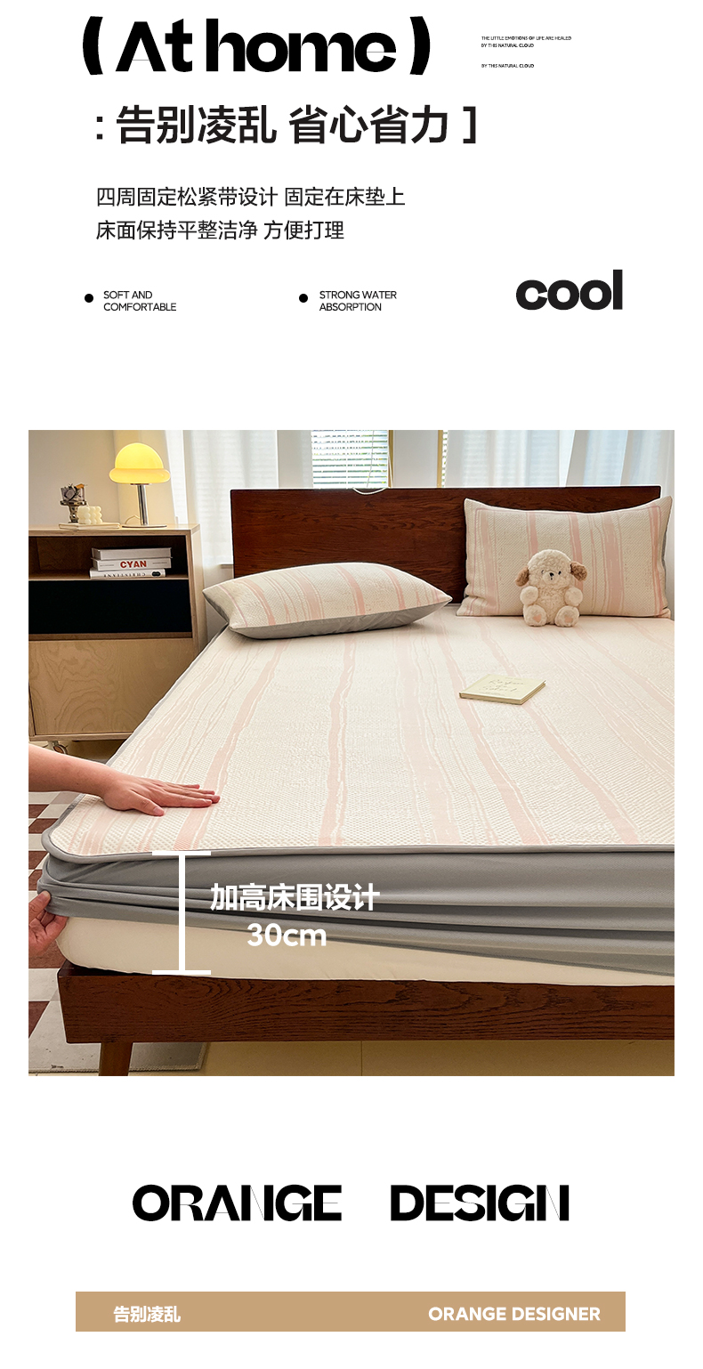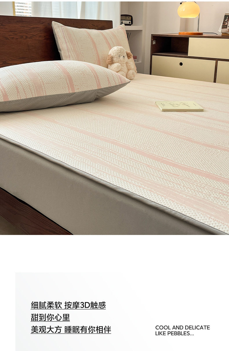 雅居纺家纺 2025新款A类加厚三明治底简约提花凉感席系列-床笠款 线条-粉