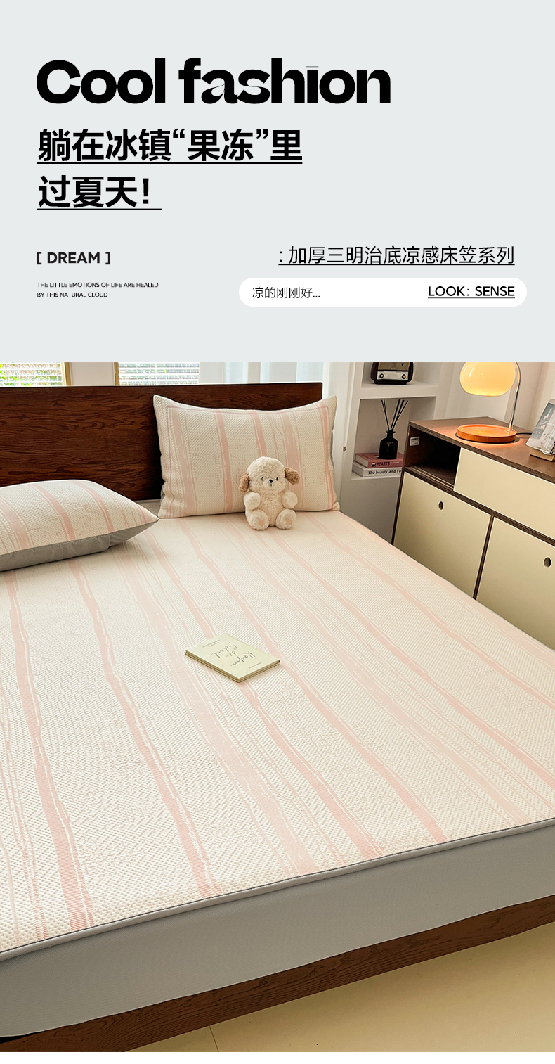 商品名称:雅居纺家纺 2025新款A类加厚三明治底简约提花凉感席系列-床笠款 线条-粉