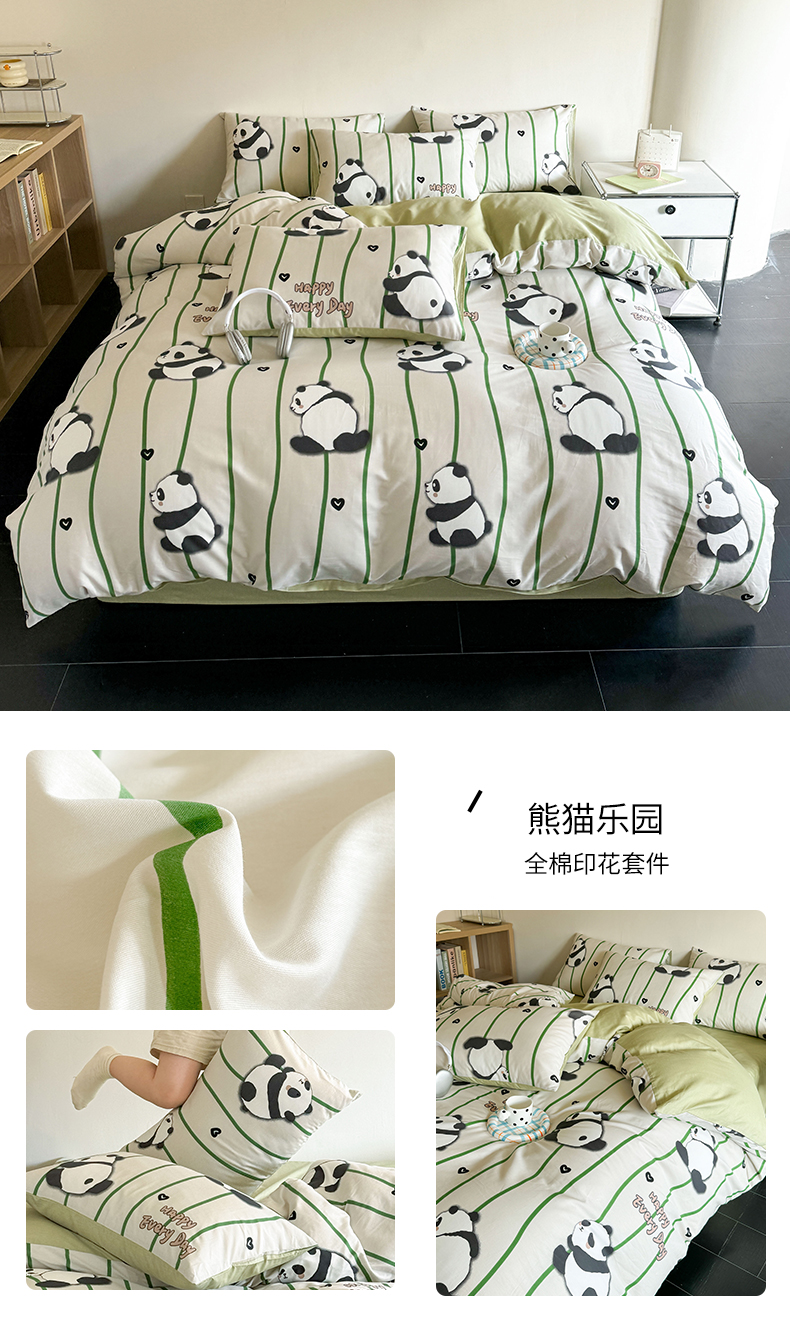 商品名称:澳梵家居 2025新款全棉印花四件套 熊猫乐园