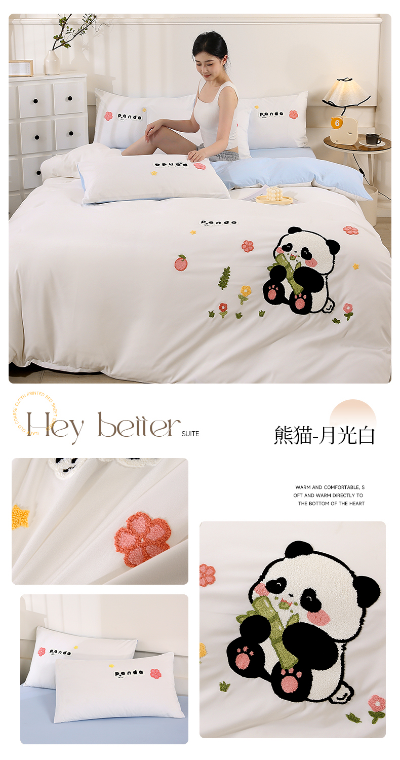 商品名称:优米家纺 2025新款A类水洗棉毛巾绣四件套-熊猫 熊猫-柔情玉