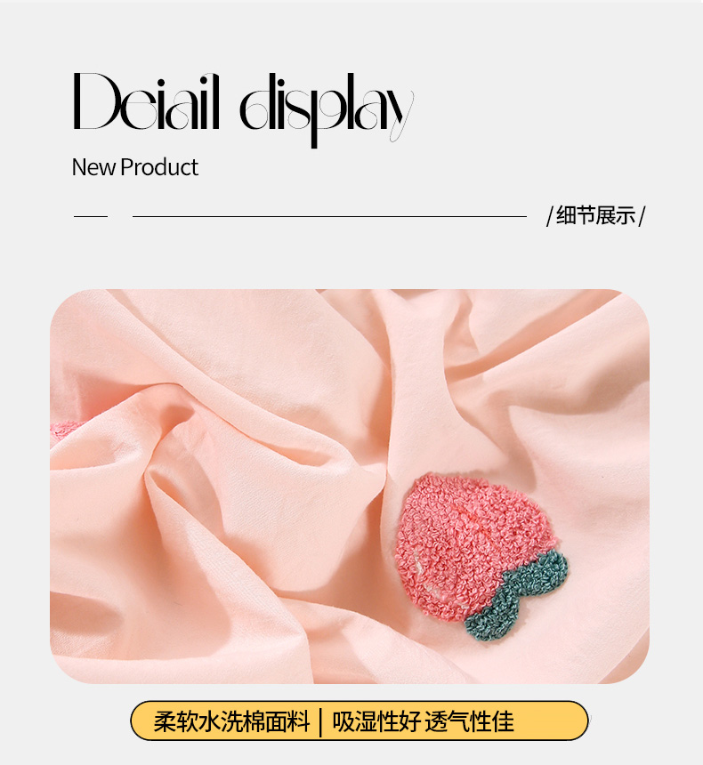 商品名称:优米家纺 2025新款A类水洗棉毛巾绣四件套-桃子兔 桃子兔-月光白