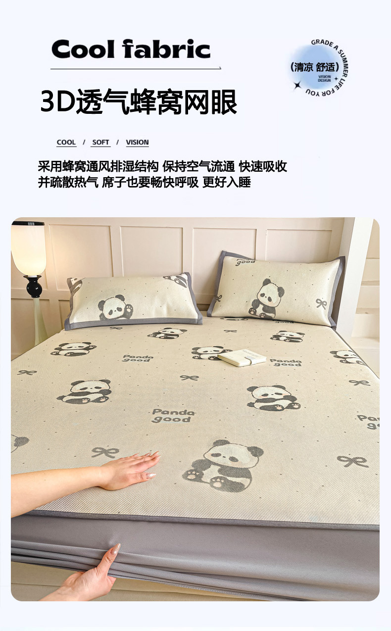 商品名称:柒月家居 2025新款小清新印花冰藤系列凉席席子-床笠款 熊猫团子