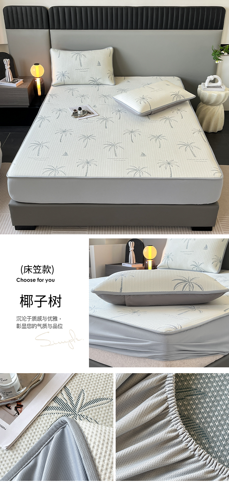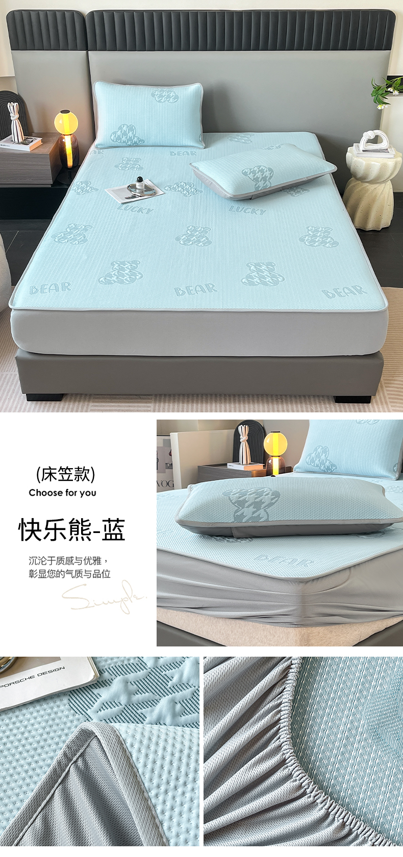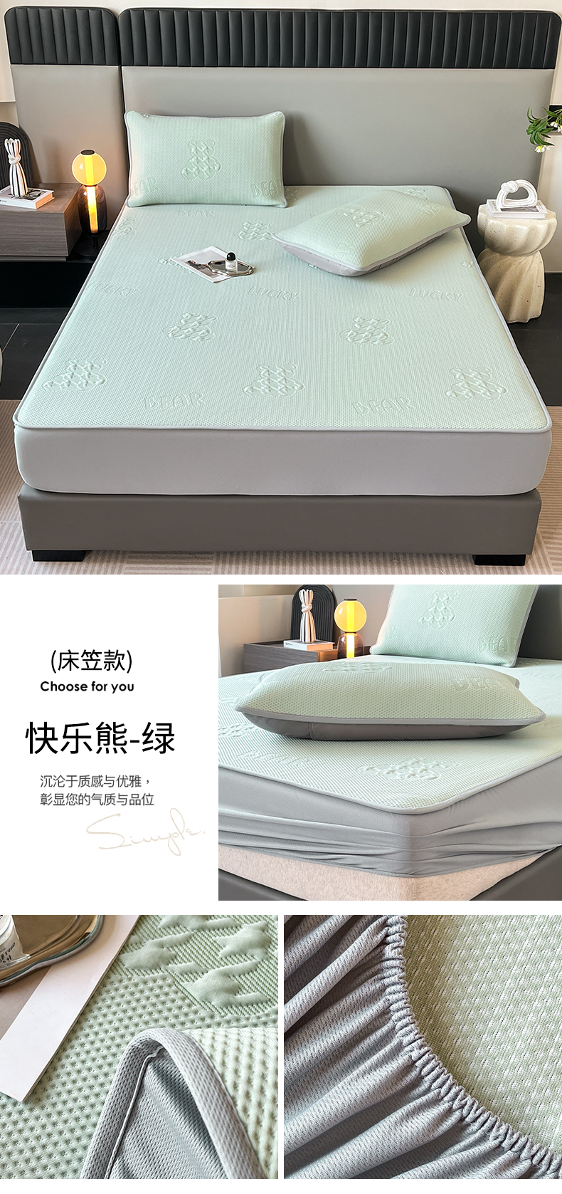 (总)子曰 2025春夏新款A类中分子430gPE聚乙烯乙纶凉豆豆凉席-床笠款,小豹纹-灰,快乐熊-蓝,快乐熊-绿,小豹纹-粉,小鲸鱼,椰子树,英伦-灰