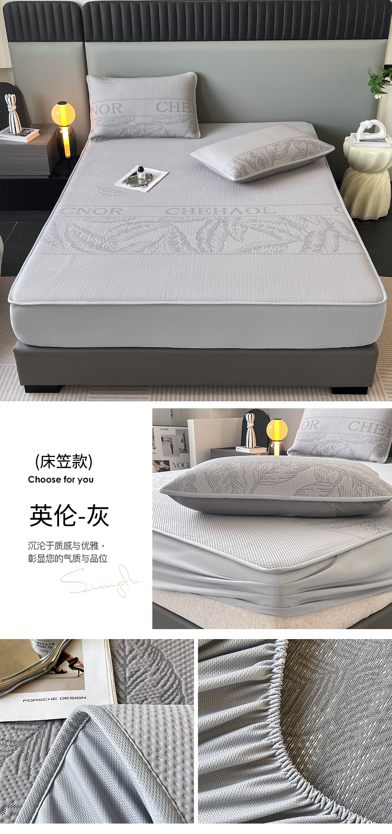 商品名称:子曰 2025春夏新款A类中分子430gPE聚乙烯乙纶凉豆豆凉席-床笠款 英伦-灰