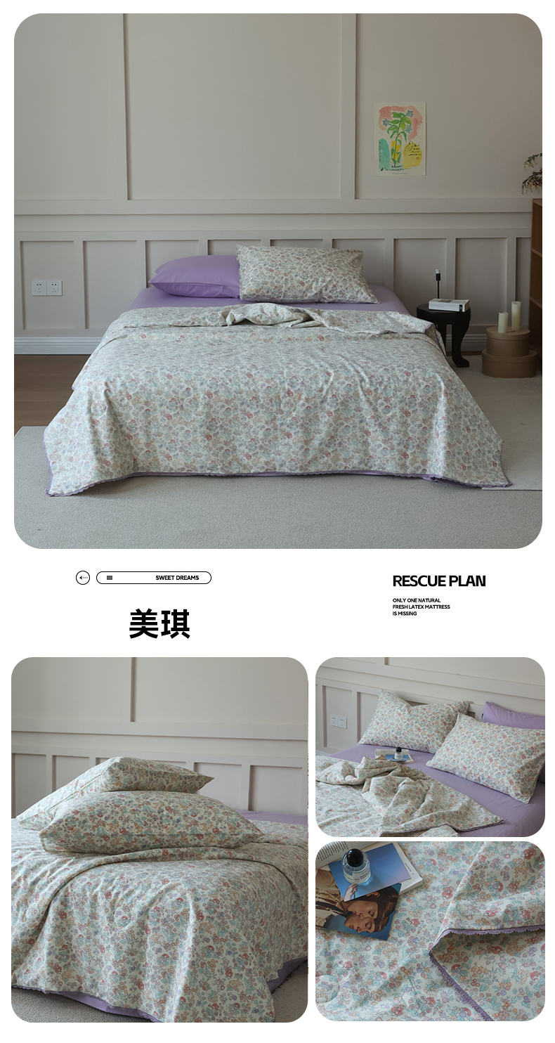 当前位置: 91家纺网 > 商品网购 > 床品套件 > 四件套 > 夏被四件套 > 棉眠 2025新款纯棉花边夏被套件 美琪