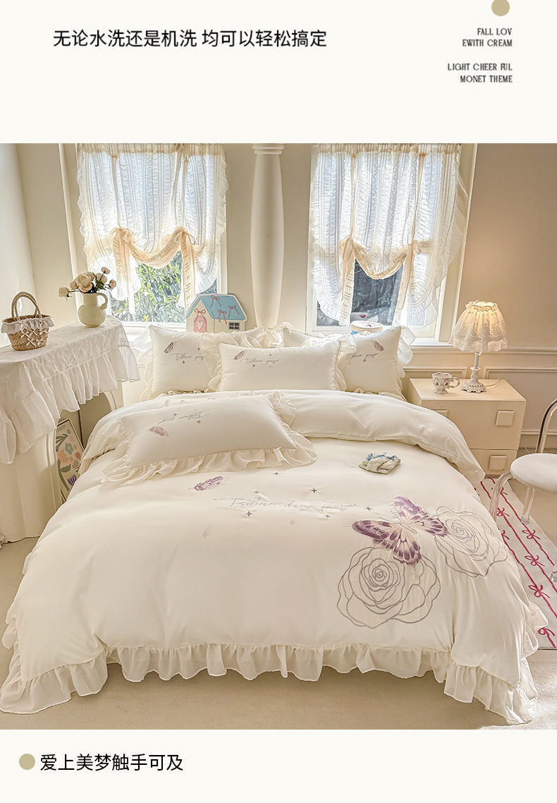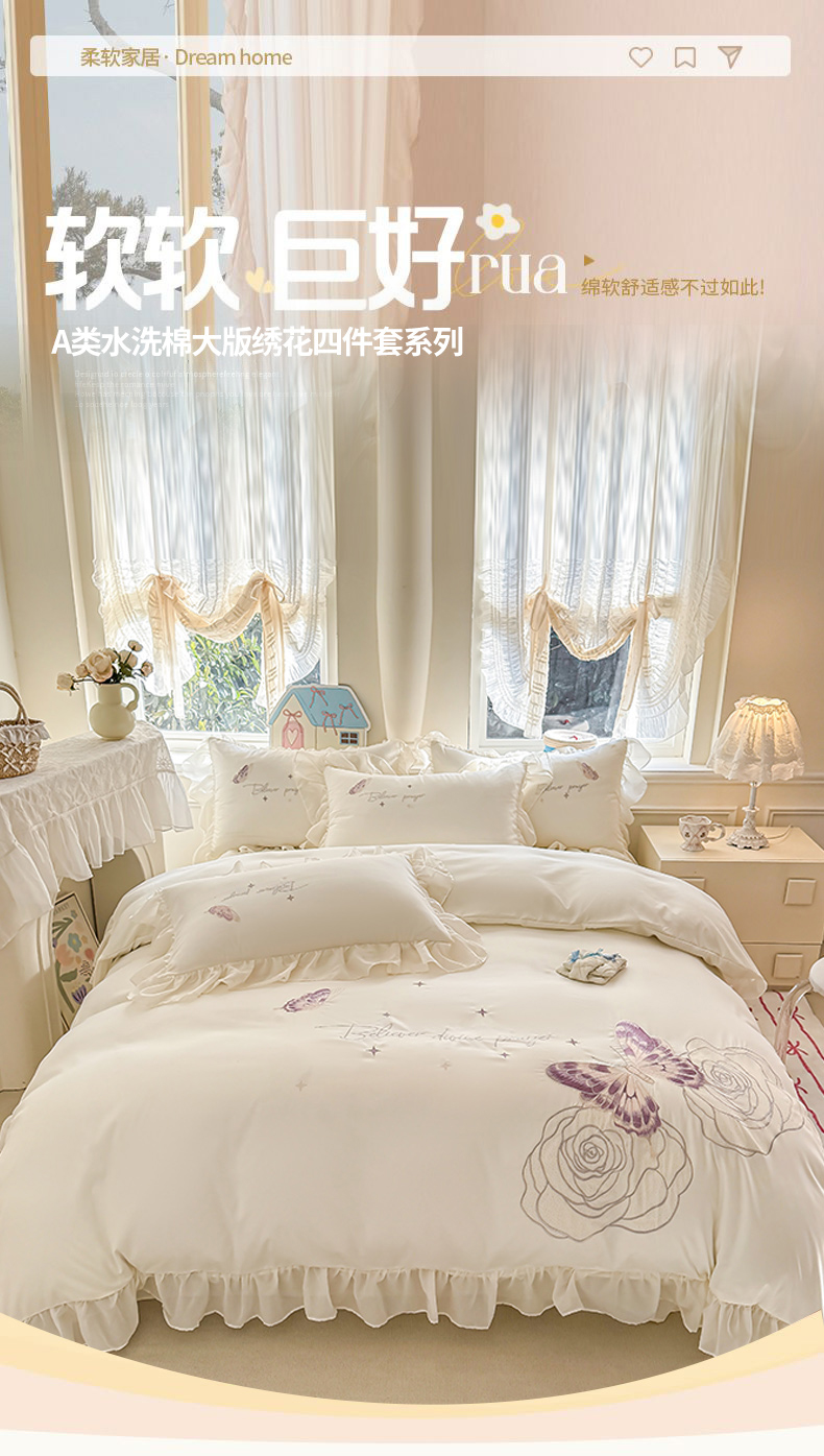 当前位置: 91家纺网 > 商品网购 > 床品套件 > 四件套 > 其它四件套 > 凯美家居 2025新款A类水洗棉大版绣花四件套系列-蝶恋花 蝶恋花 奶白