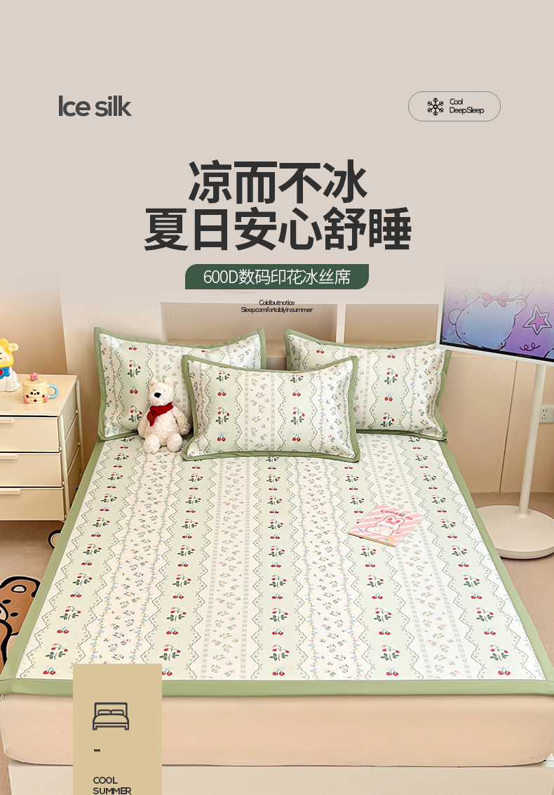 商品名称:(总)懒猫 2025新款600D数码印花冰丝凉席席子