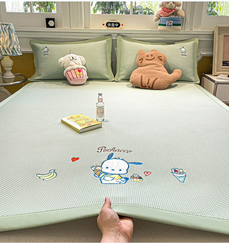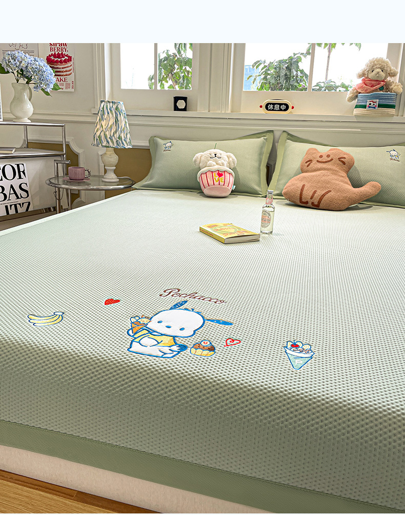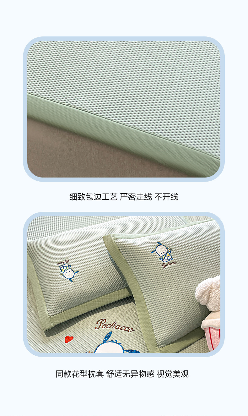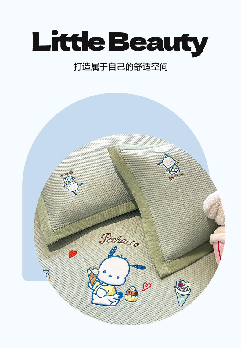 商品名称:蓝邻家纺 2025年新款PE提花正版三丽鸥刺绣凉席系列-场景一 爱心帕恰狗