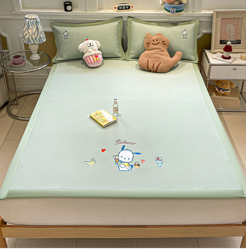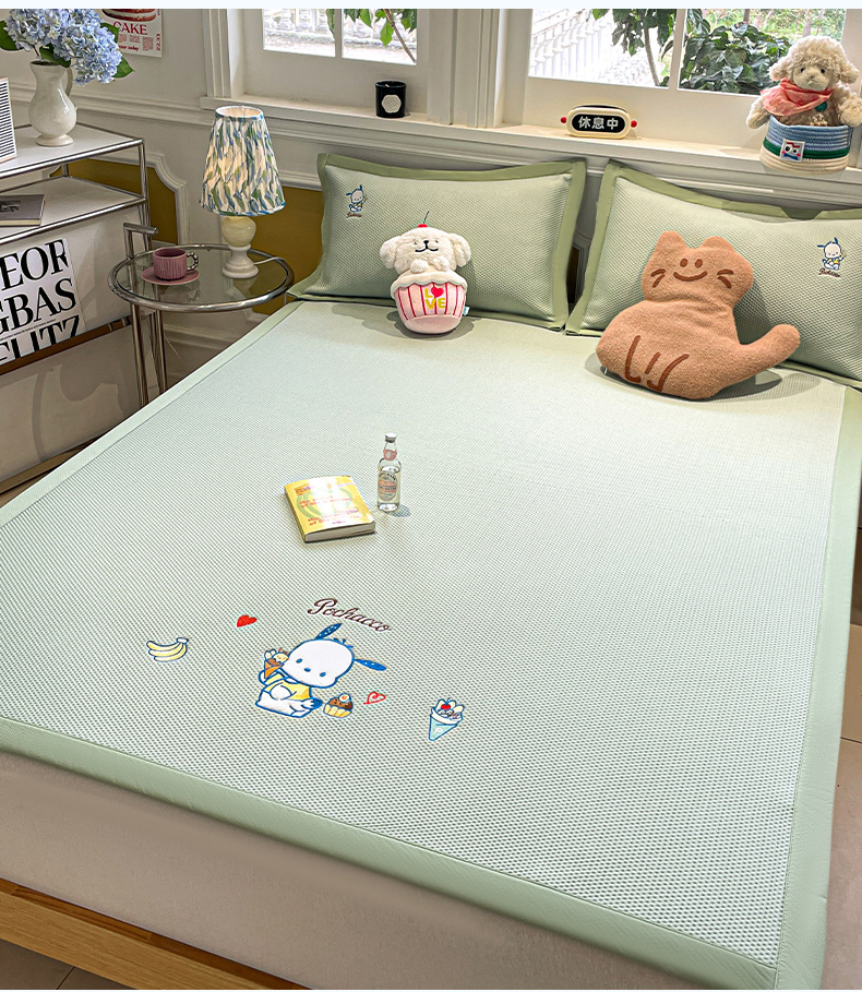 蓝邻家纺 2025年新款PE提花正版三丽鸥刺绣凉席系列-场景一 爱心帕恰狗