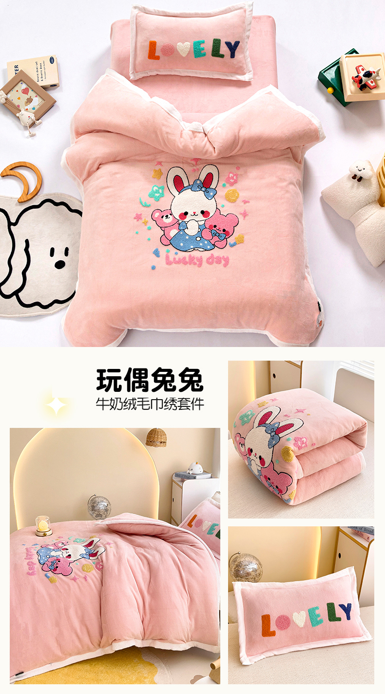当前位置: 91家纺网 > 商品网购 > 床品套件 > 三件套 > 梵赫 2025新款A类牛奶绒毛巾绣儿童幼儿园三件套多件套 玩偶兔兔