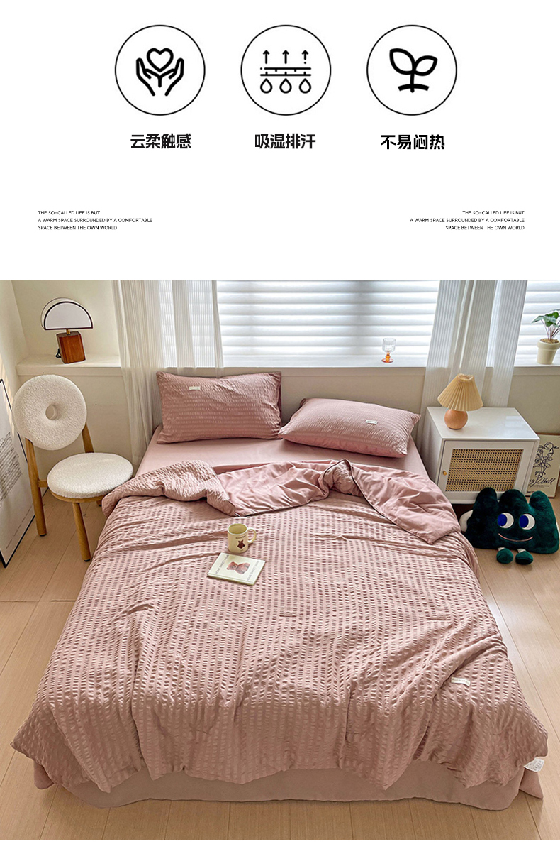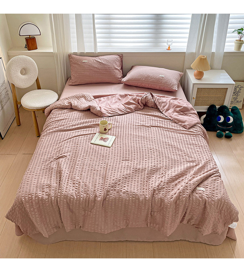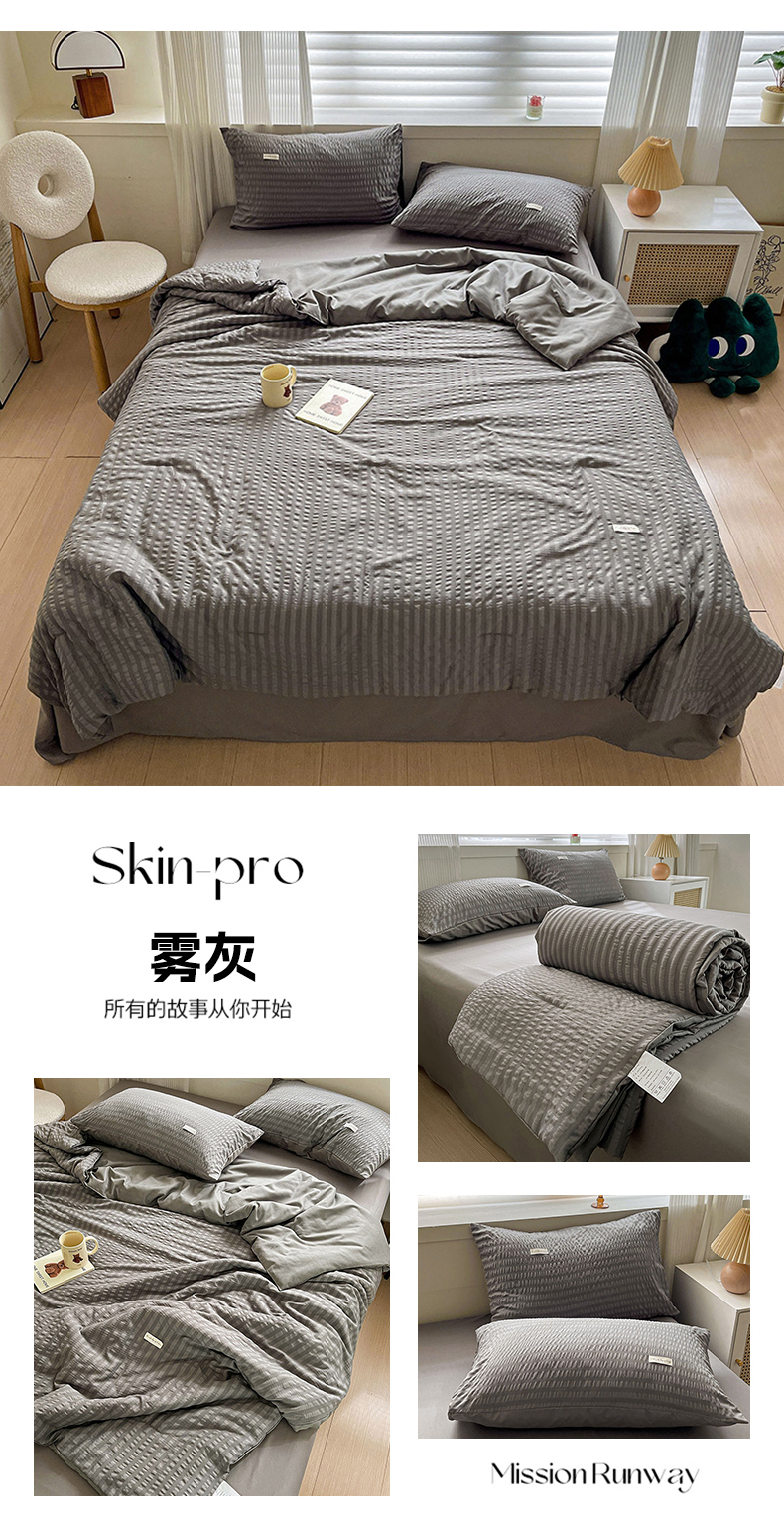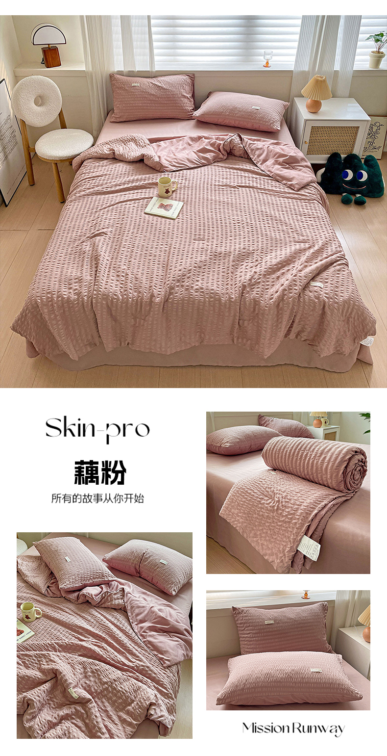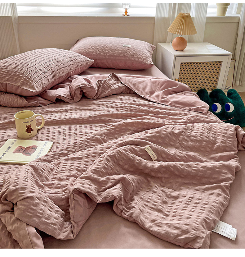 商品名称:(总)缦绣阁家纺 2025春夏新款纯色简约亲肤泡泡纱夏被凉感夏凉被三件套四件套空调被