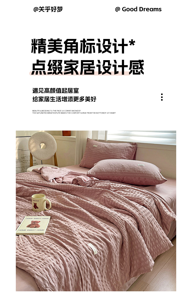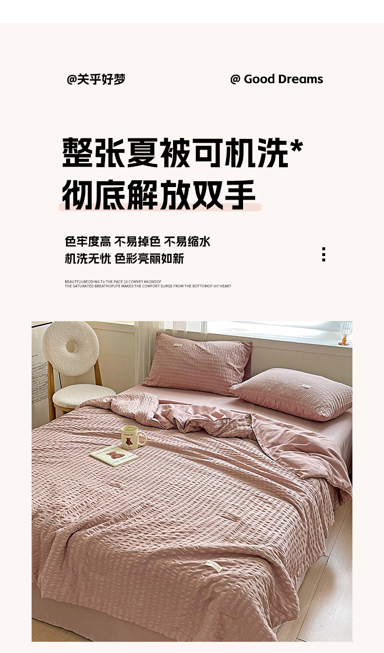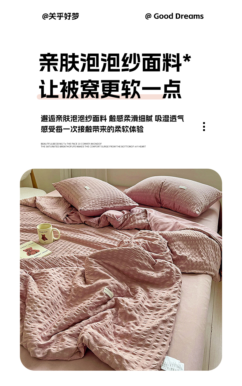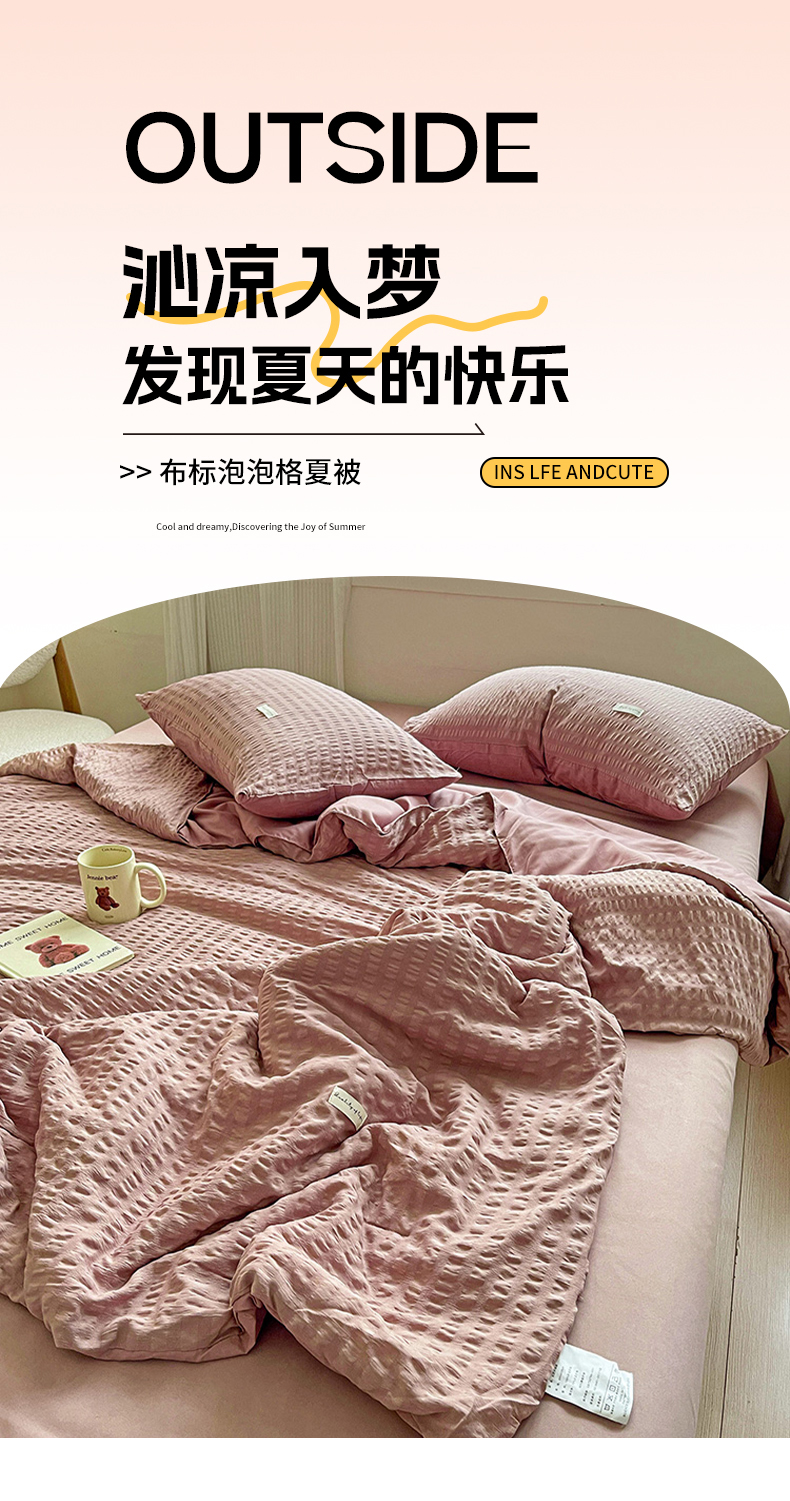 商品名称:(总)缦绣阁家纺 2025春夏新款纯色简约亲肤泡泡纱夏被凉感夏凉被三件套四件套空调被
