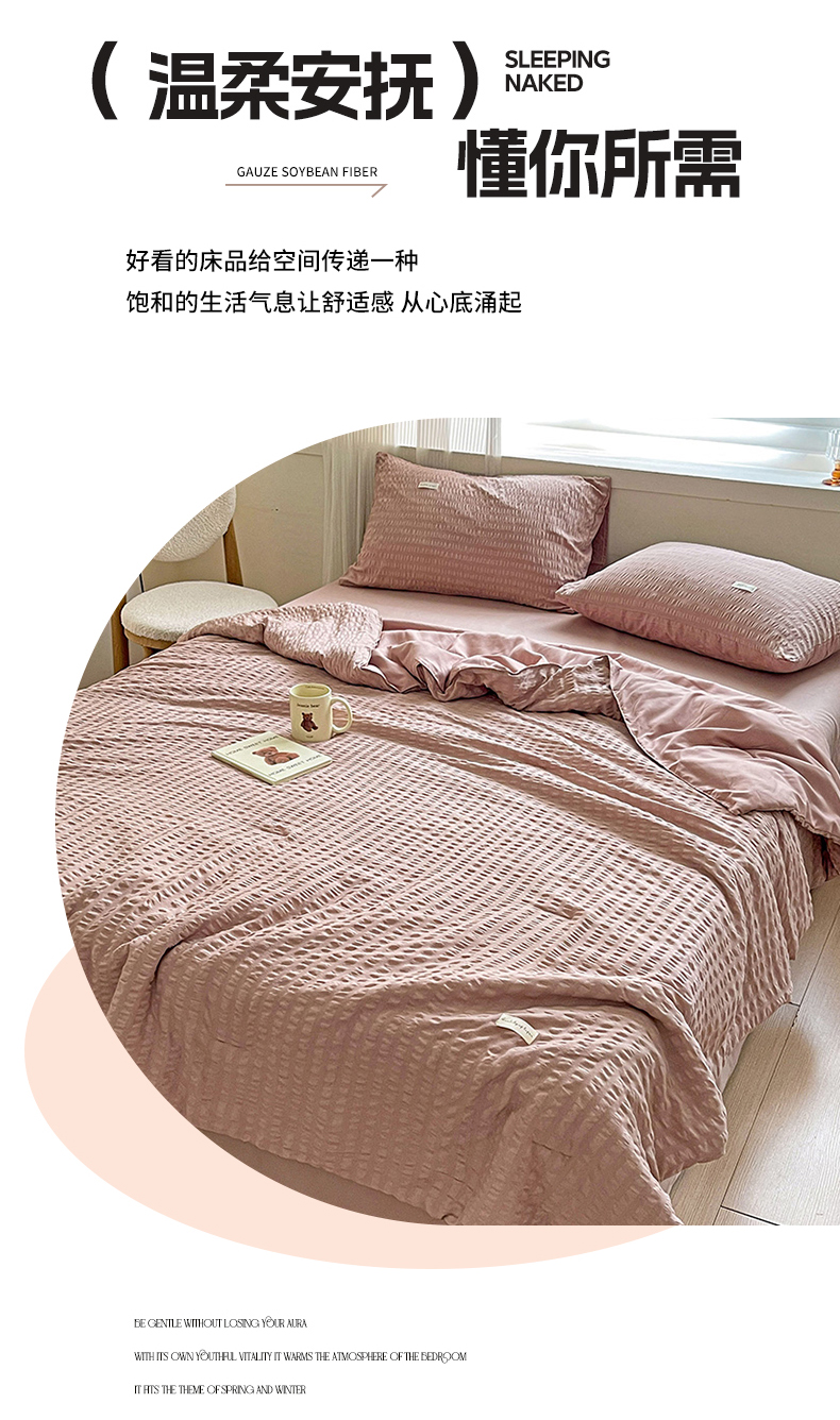 (总)缦绣阁家纺 2025春夏新款纯色简约亲肤泡泡纱夏被凉感夏凉被三件套四件套空调被