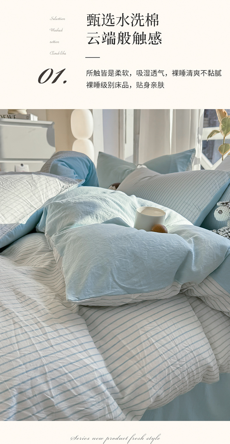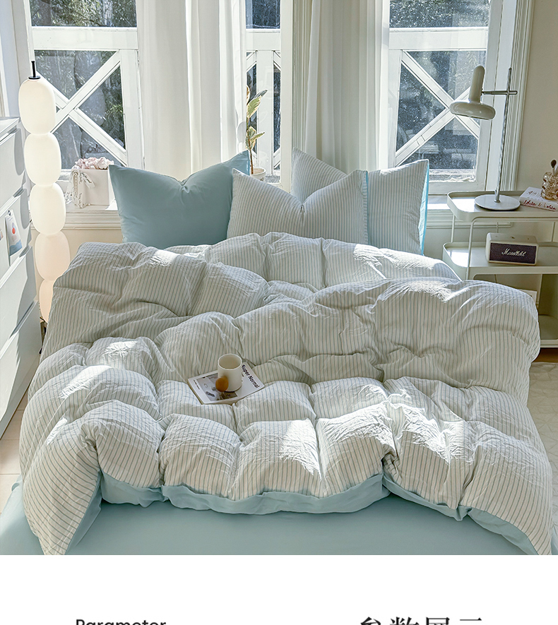 (总)缦绣阁家纺 2025新款无印风条纹水洗磨毛四件套简约风4件套学生宿舍三件套,良品条纹粉玉,良品条纹果绿,良品条纹咖,良品条纹蓝,良品条纹奶黄,良品条纹青绿,良品条纹驼,良品条纹紫