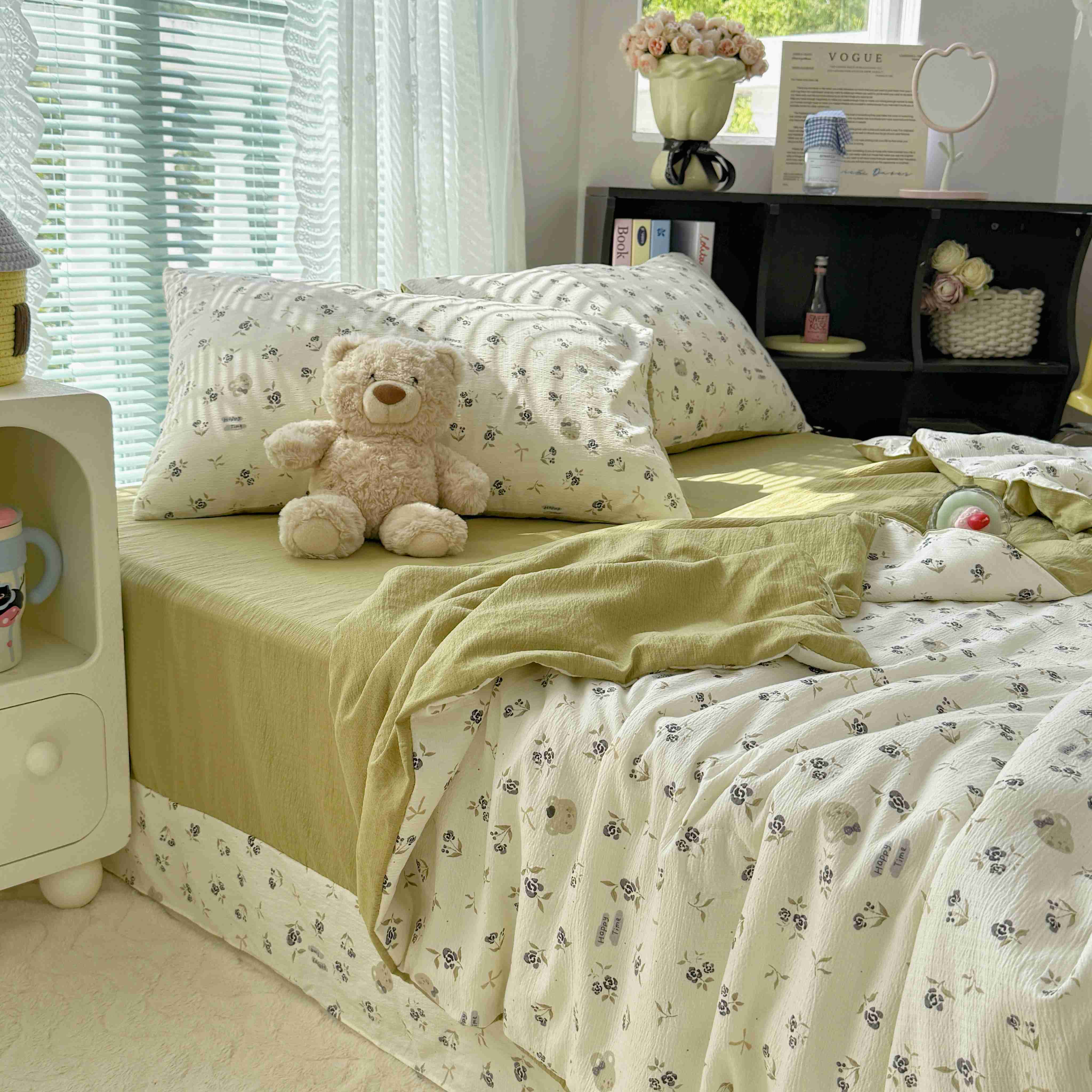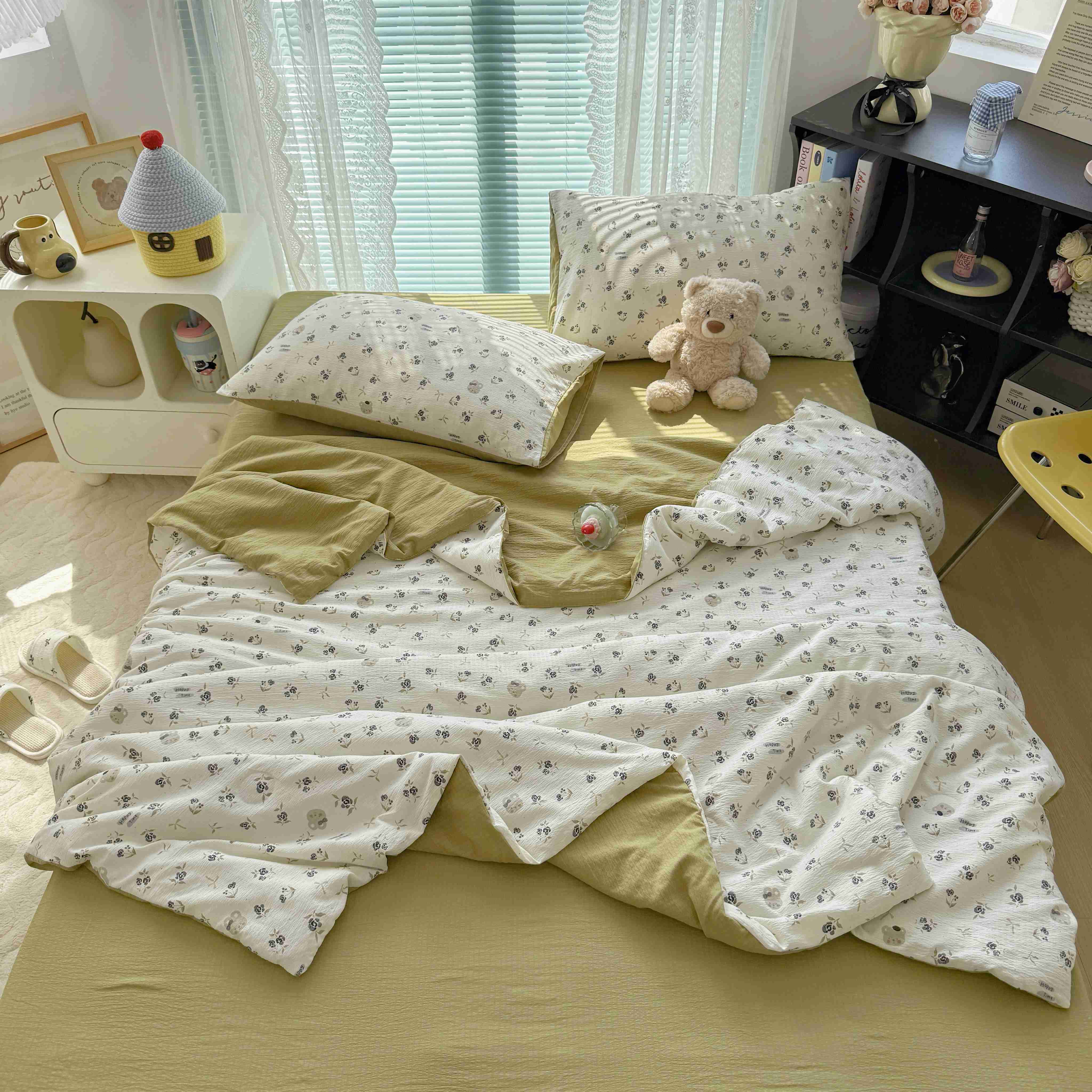 暖伊家居 2025新款云感双层纱夏被四件套 木棉小熊