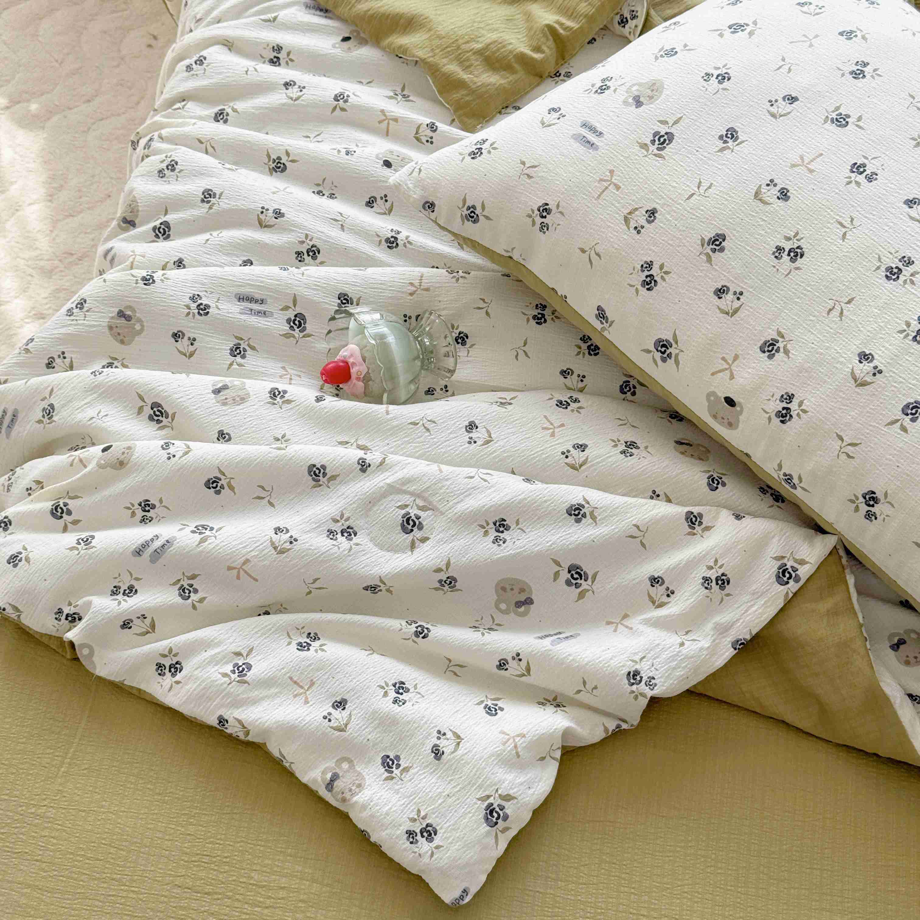 暖伊家居 2025新款A类针织双层纱四件套 栀趣,栀趣