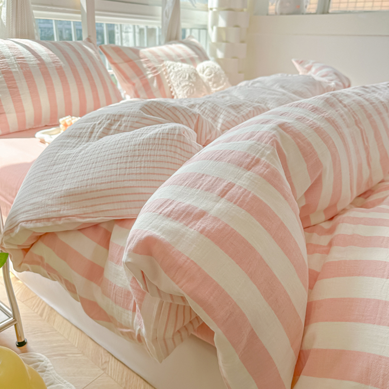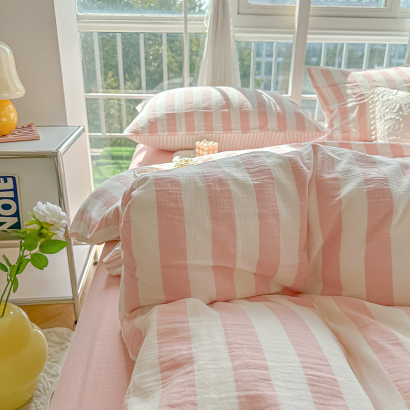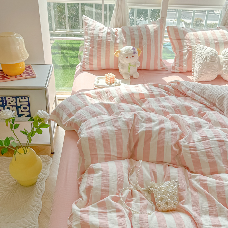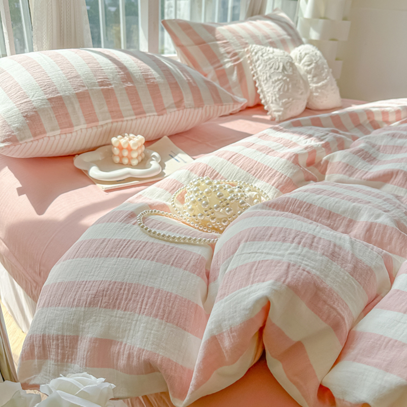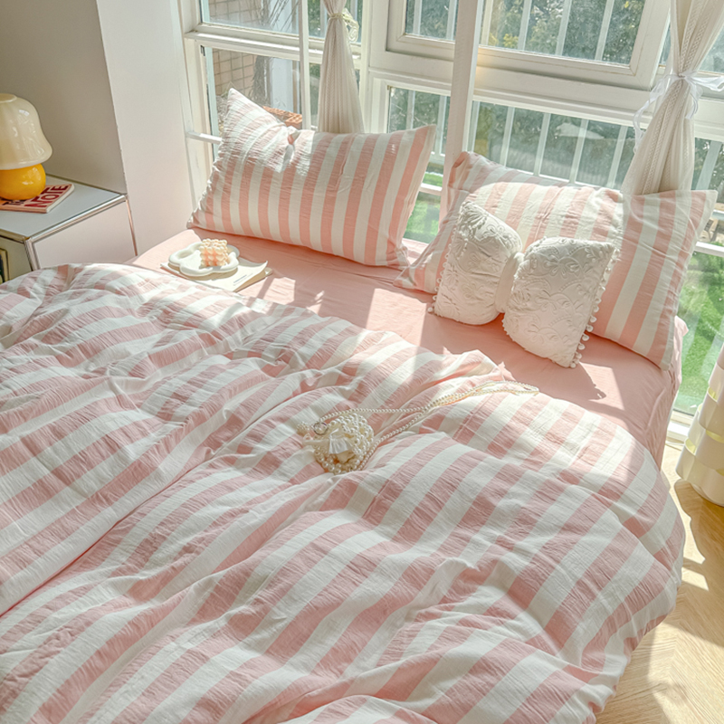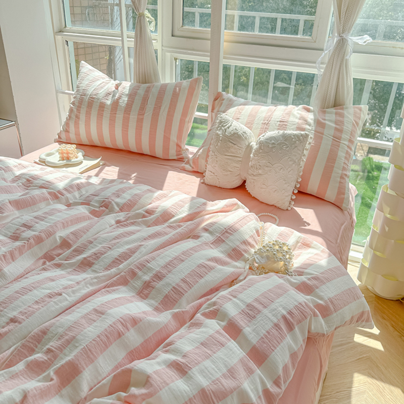 当前位置: 91家纺网 > 商品网购 > 床品套件 > 四件套 > 水洗棉四件套 > 缦绣阁家纺 2025新款水洗棉亲肤云朵条纹四件套小清新条纹床单款床笠款4件套学生宿舍三件套 云朵条纹桃粉