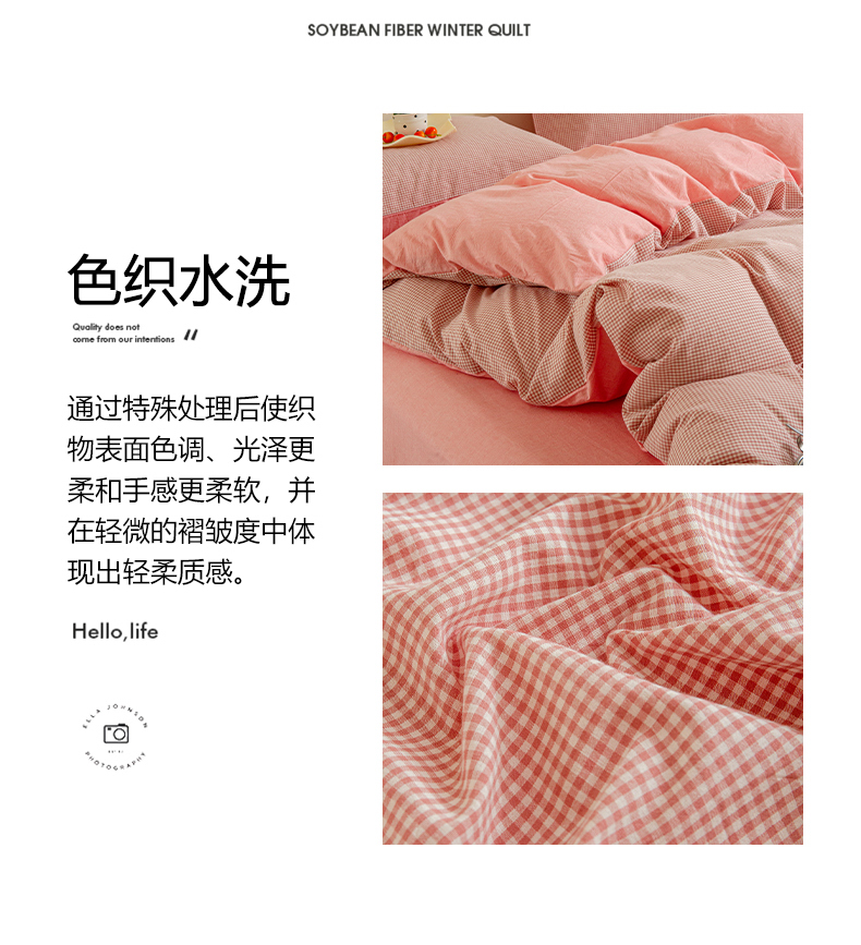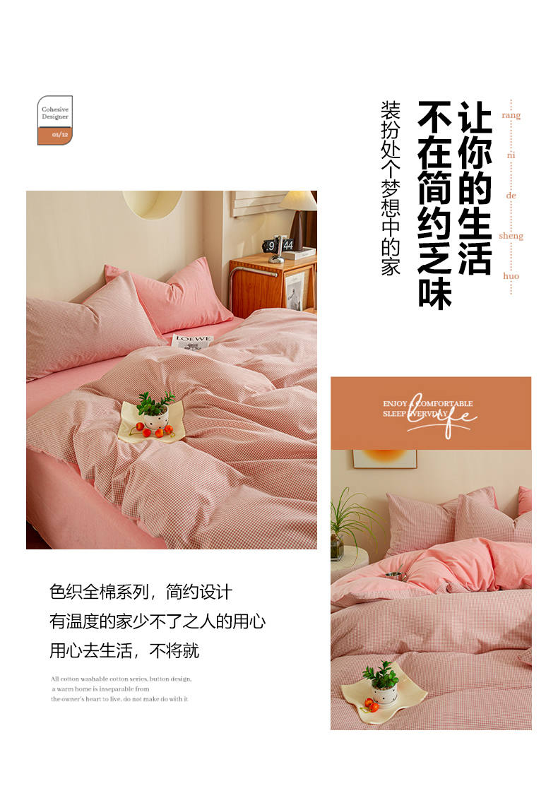 商品名称:优米家纺 2025新款色织全棉纯棉40支水洗四件套及床单系列-四件套 玉小格
