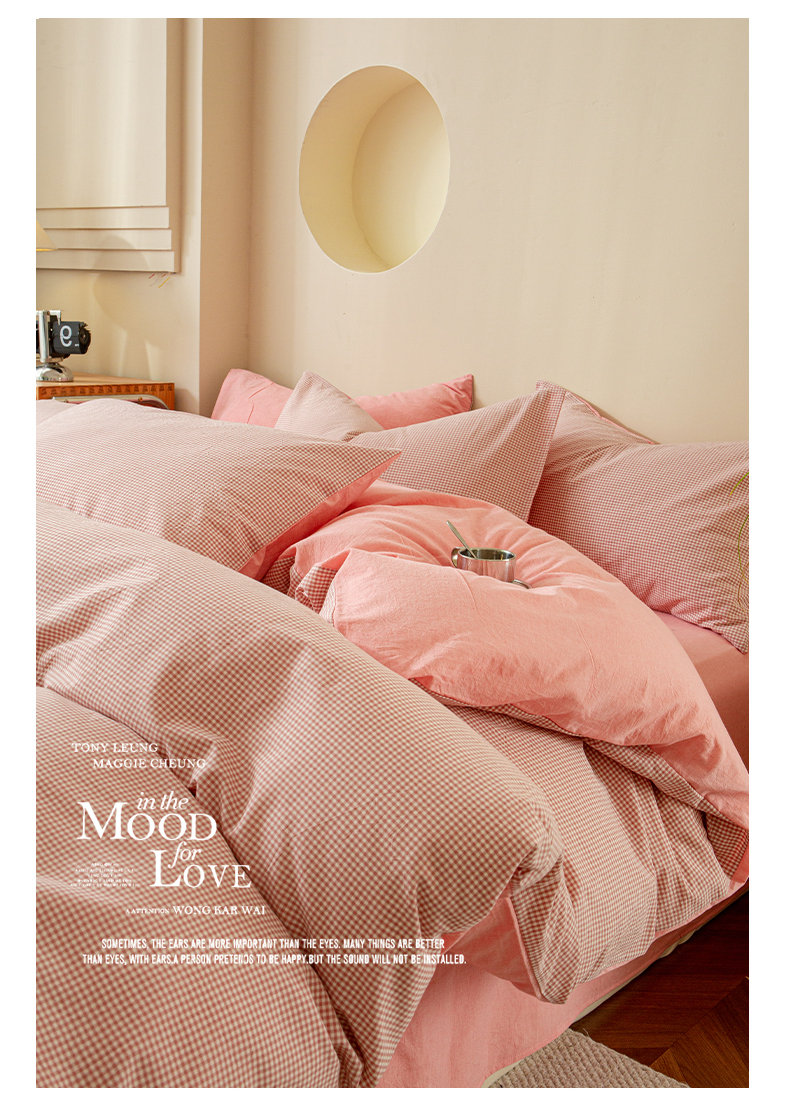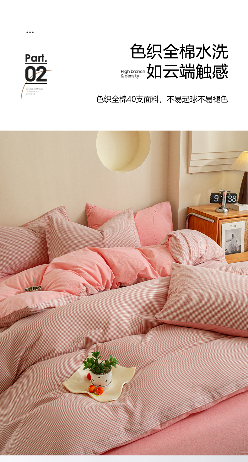 优米家纺 2025新款色织全棉纯棉40支水洗四件套及床单系列-四件套 玉小格