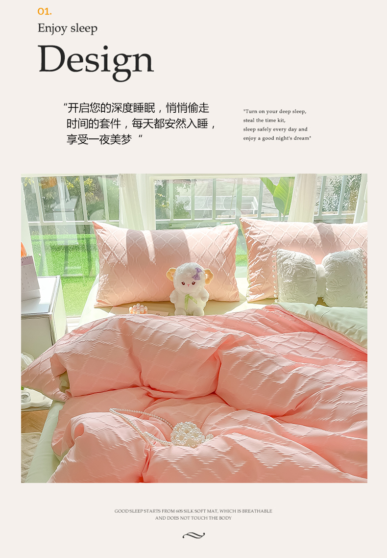 (总)缦绣阁家纺 2025新款华夫格亲肤舒适四件套学生宿舍被套双人床品夏季床单被罩三件套,华夫格压泡-粉+果绿,华夫格压泡-果绿+芝士,华夫格压泡-抹茶+芝士,华夫格压泡-奶白+雾兰,华夫格压泡-浅绿+浅驼,华夫格压泡-深灰+抹茶,华夫格压泡-天空兰+雾兰,华夫格压泡-芝士+浅绿
