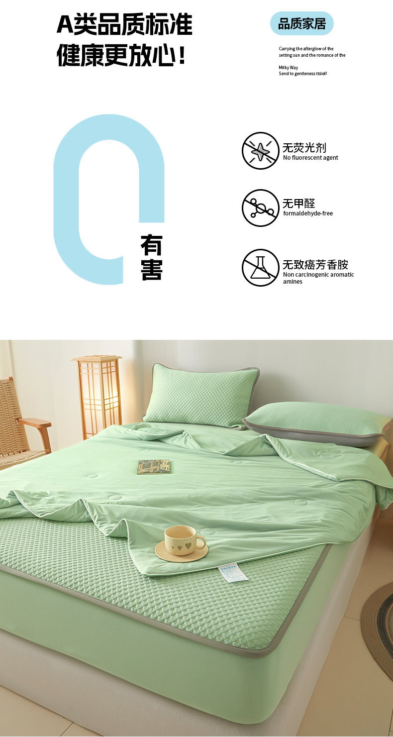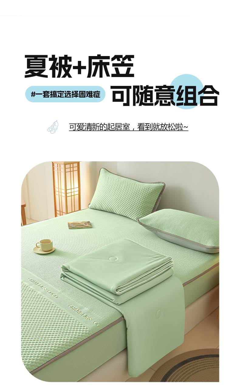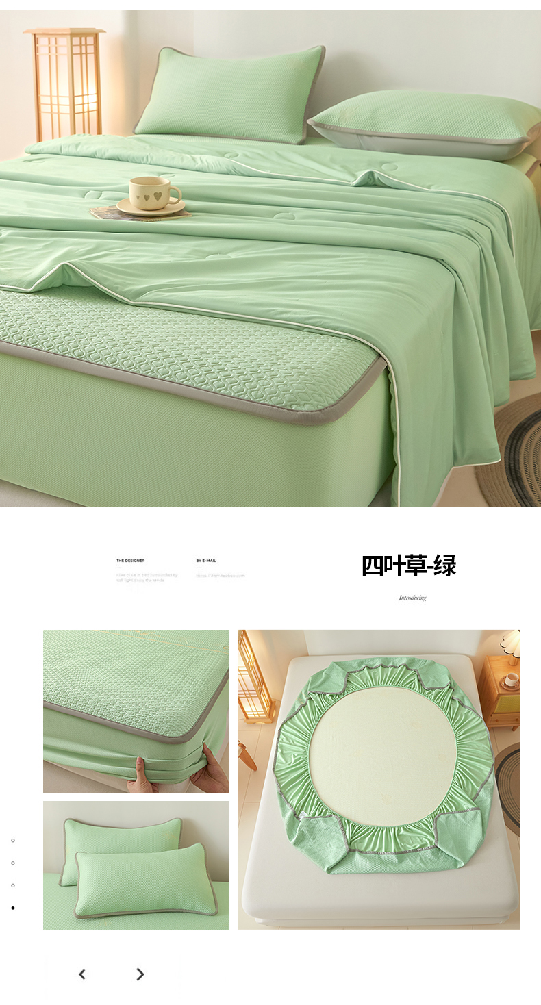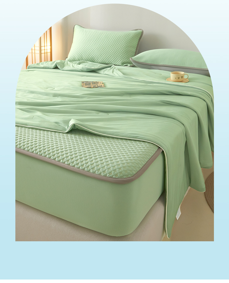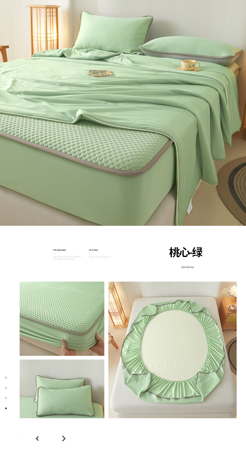 当前位置: 91家纺网 > 商品网购 > 床品套件 > 四件套 > 夏被四件套 > 欧邦 2025春夏新款PE凉感冰豆豆床笠款夏被夏凉被空调被四件套 桃心-绿