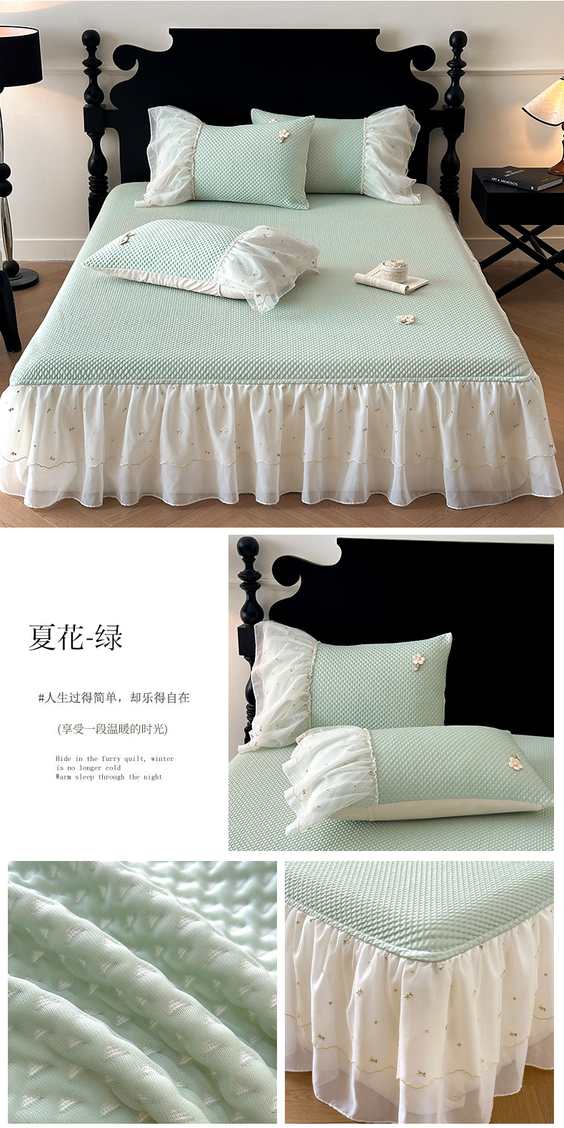 (总)蓝邻家纺 2025春夏新款PE提花雪纺+绣花花边凉席席子-场景二