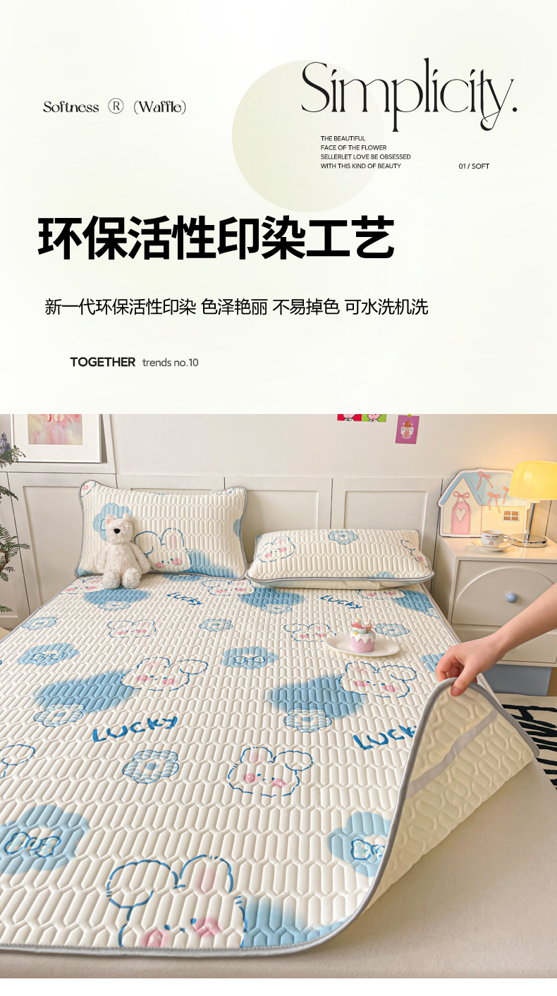 沐慕 2025新款高克重小清新乳胶凉席-风格一 萌宠乐园