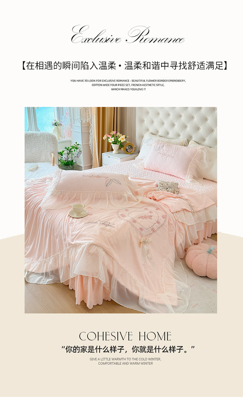 总宅家居 2024新款秘密花园系列轻奢小香风纯棉刺绣长绒棉四件套,秘密花园-初夏粉,秘密花园-梵星蓝,秘密花园-贵妃绿,秘密花园-奶昔白,秘密花园-香槟金