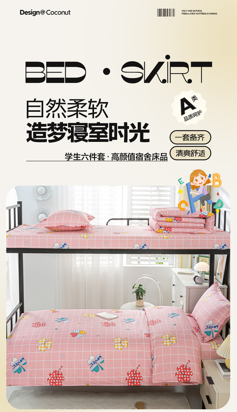 当前位置: 91家纺网 > 商品网购 > 床品套件 > 六件套 > 上学郎家居 2025新款全棉纯13372学生100棉单人床六件套学生宿舍床上用品系列二 花季盛典-粉