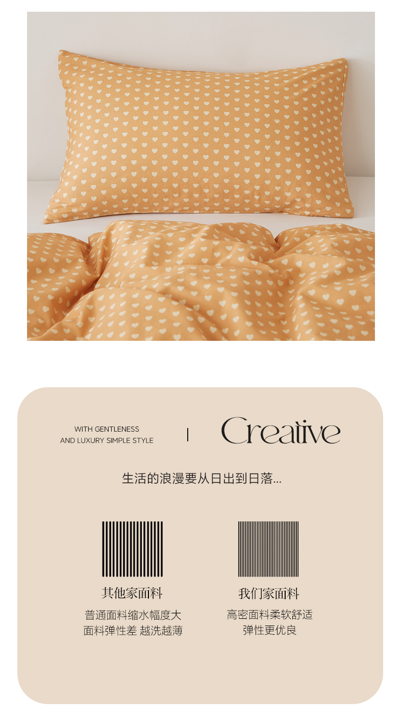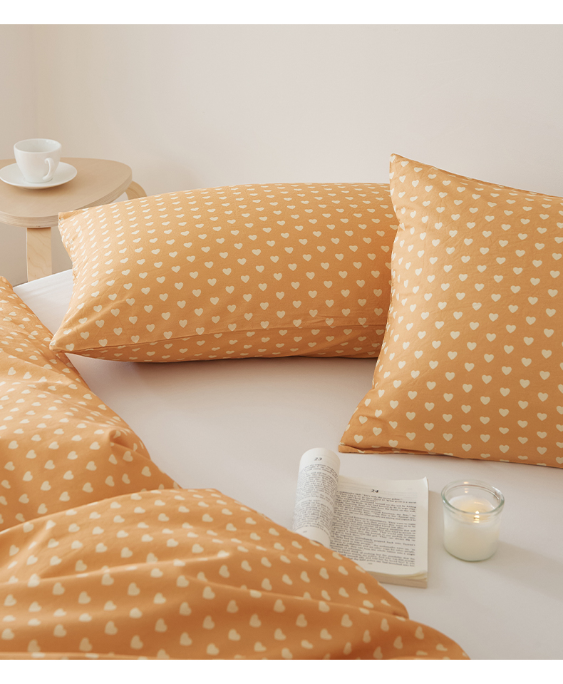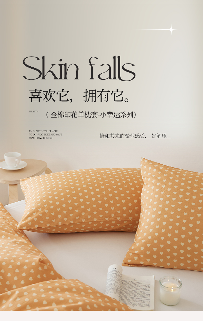 商品名称:EH家居 2025春夏新款40s全棉纯棉印花枕套单件 单枕套-小幸运 橙色爱心