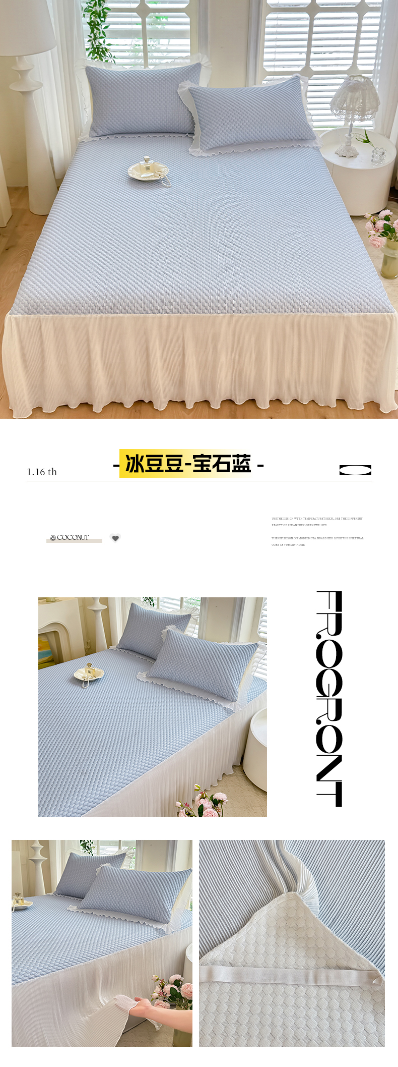 逸尚阁 2025新款凉豆豆床裙凉席三件套 冰豆豆-宝石蓝