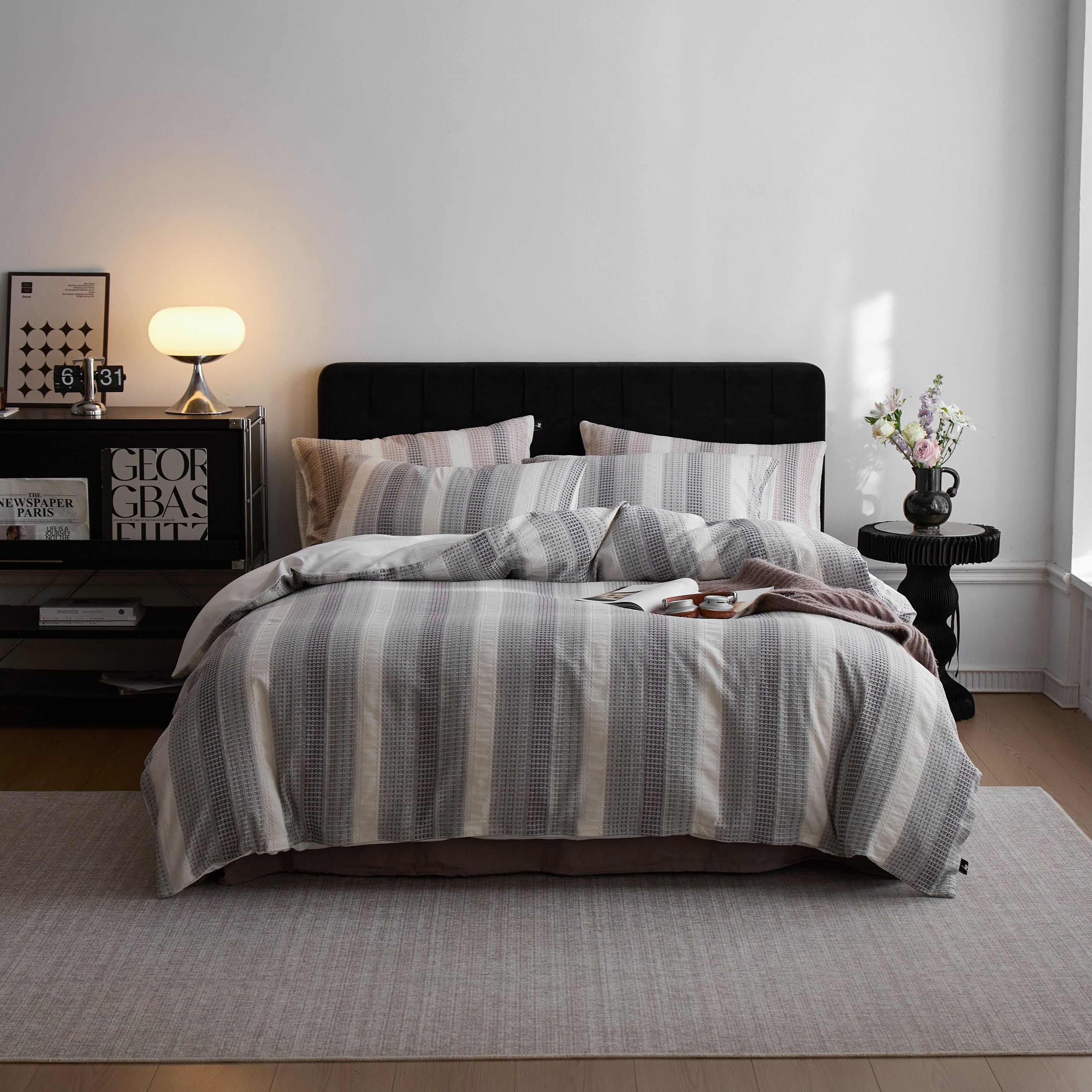 (总)安莱生活 2025春夏新款空气层色织提花四件套南阳假日系列,南阳假日-灰咖,南阳假日-卡其,南阳假日-银灰