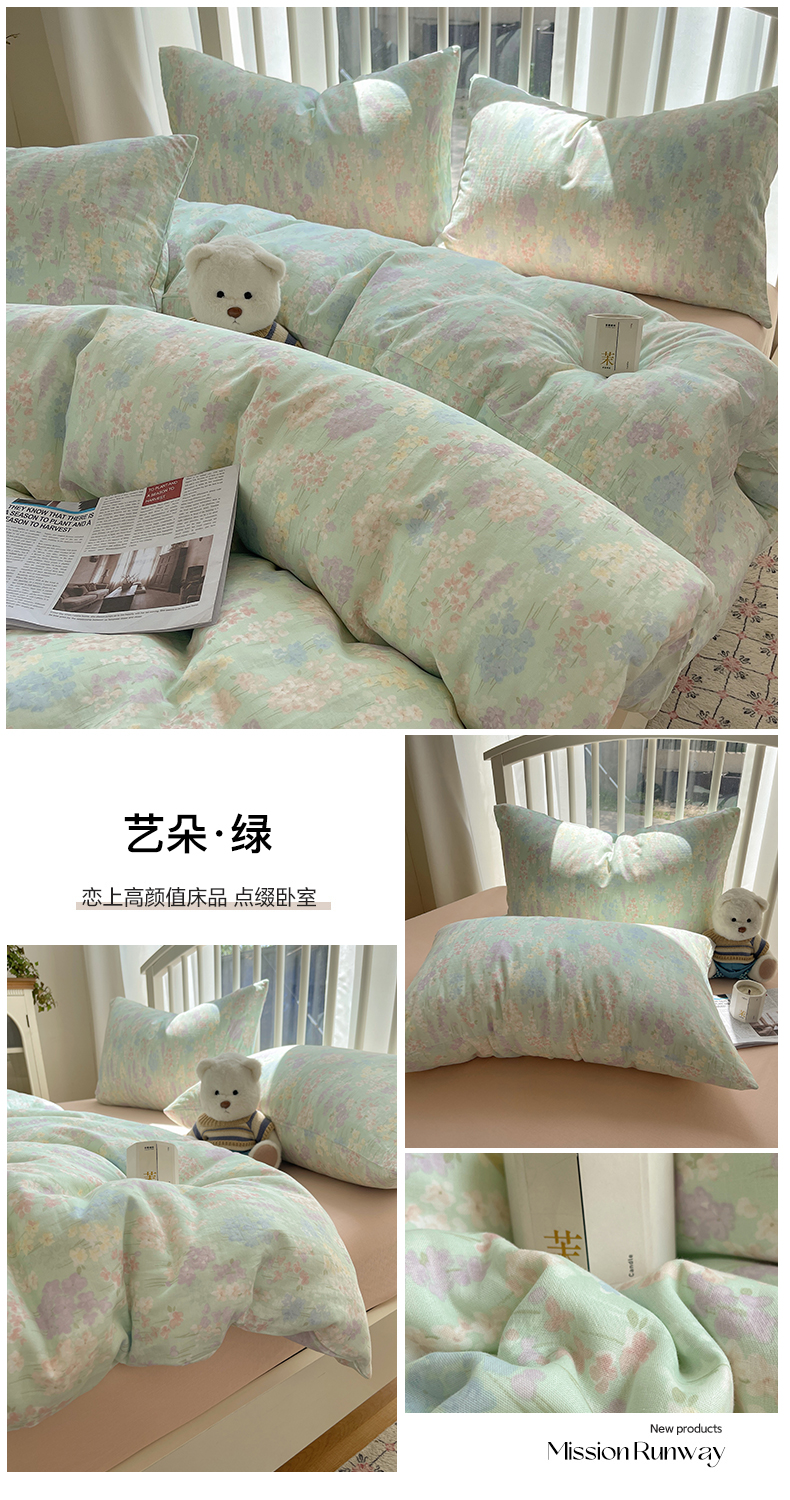 当前位置: 91家纺网 > 商品网购 > 床品套件 > 四件套 > 双层纱四件套 > XIWEN-希文家纺 2025新款A类全棉纯棉有氧双层纱四件套 艺朵-绿