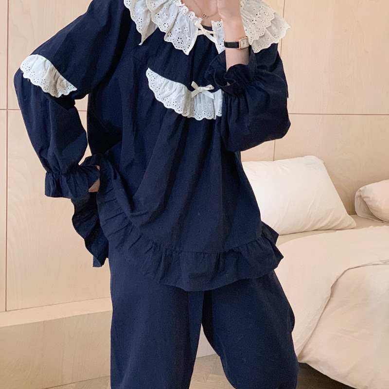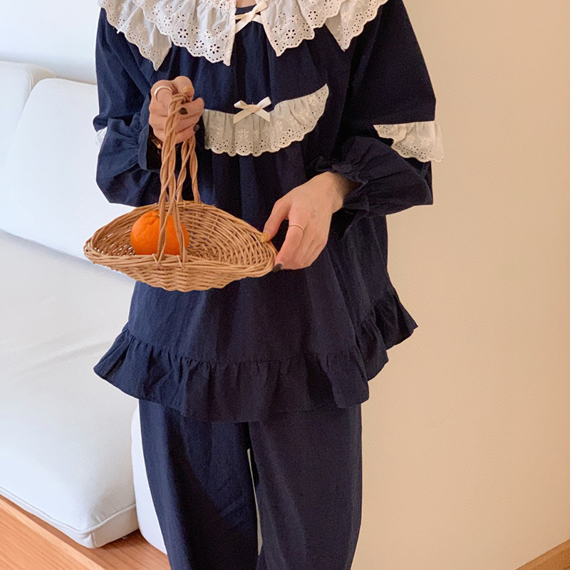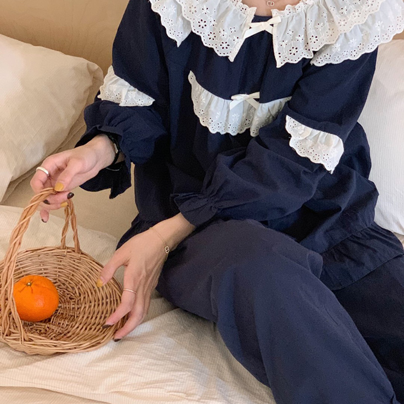当前位置: 91家纺网 > 商品网购 > 居家日用 > 睡衣/家居服套装 > (总)妍景家居生活馆 2025新款82751 韩系甜美蕾丝套装蓝