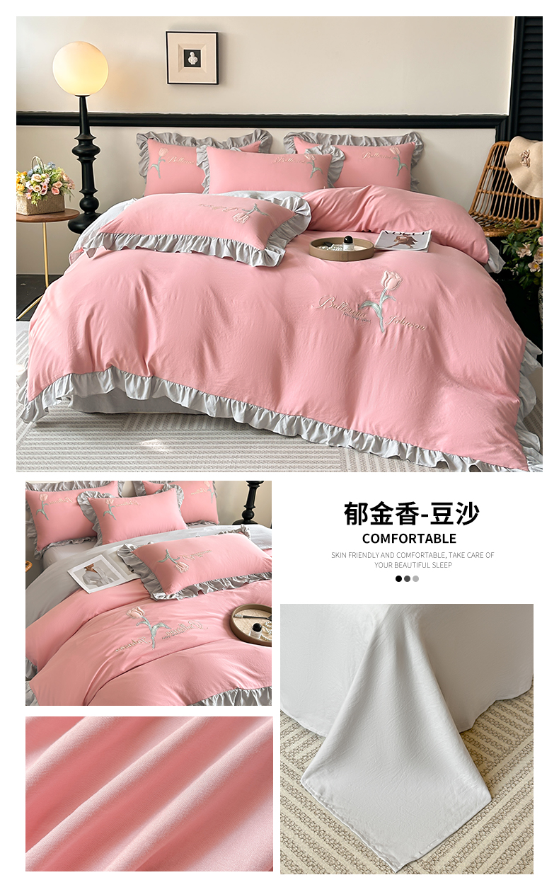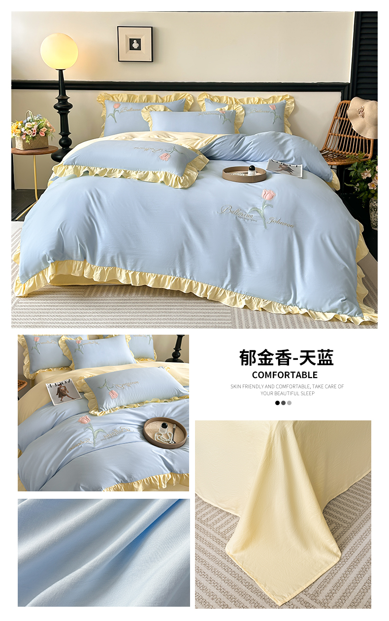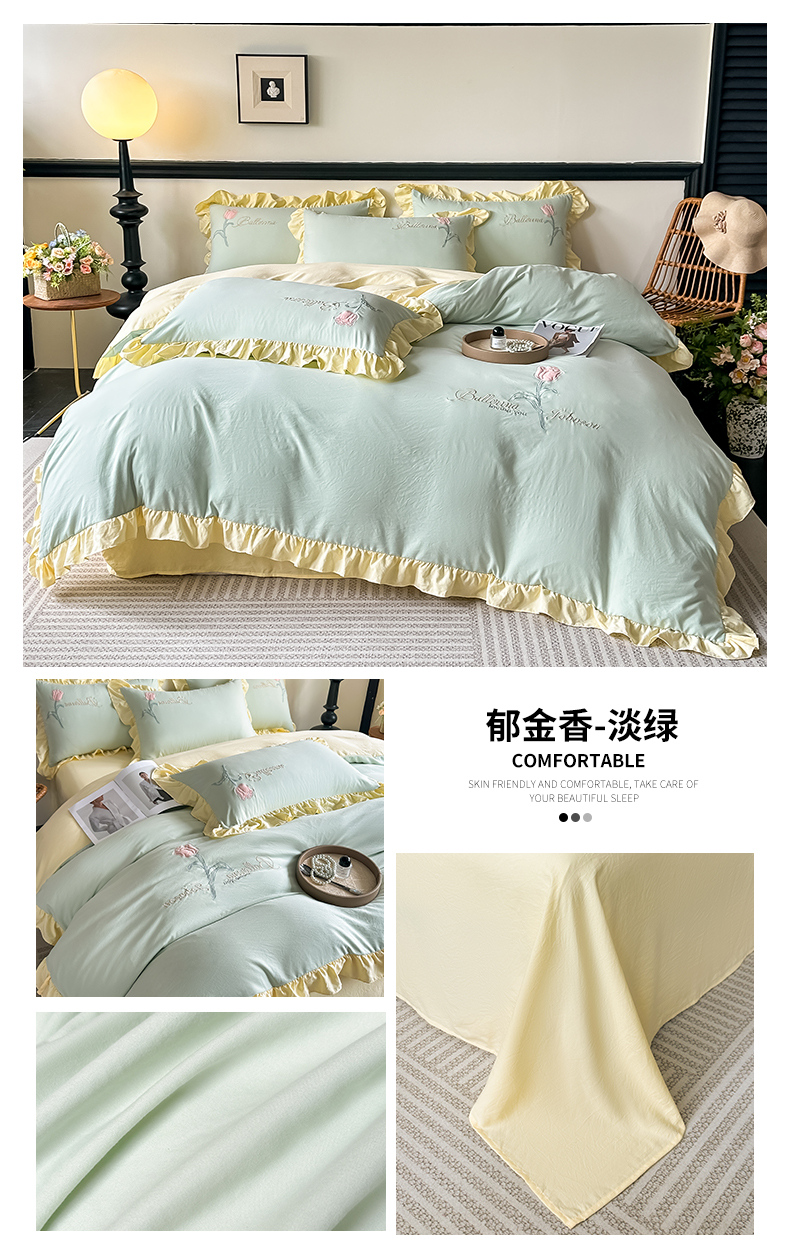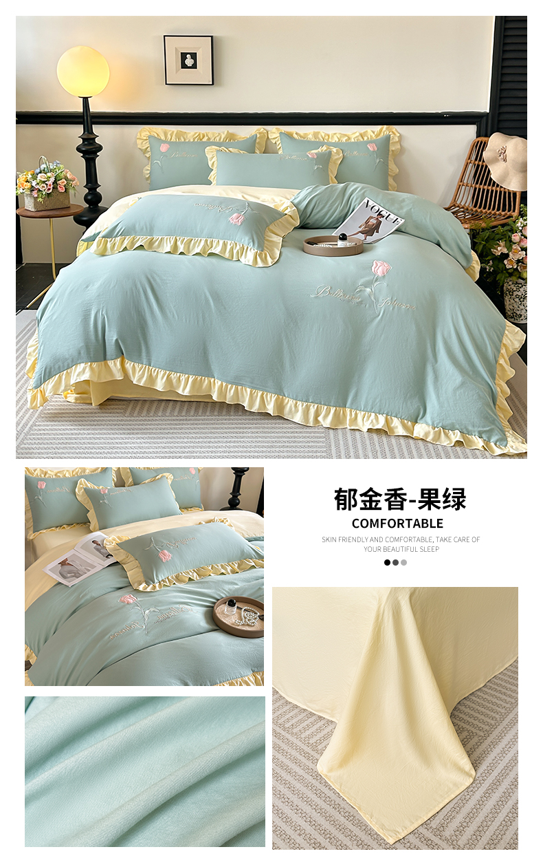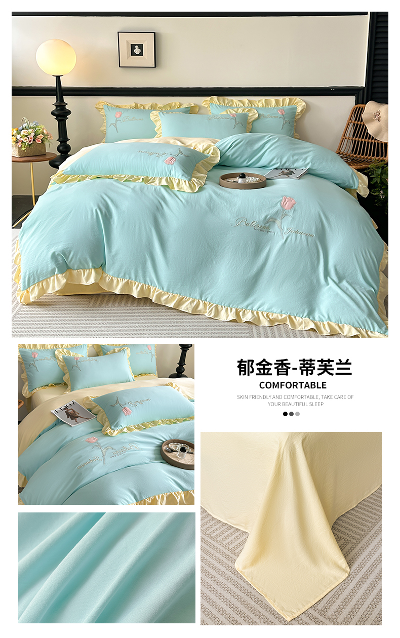 (总)梦庭帛美 2025新款韩版AB版花边贴布绣花床单床笠四件套,郁金香-淡绿,郁金香-蒂芙兰,郁金香-豆沙,郁金香-果绿,郁金香-灰粉,郁金香-抹茶绿,郁金香-天蓝
