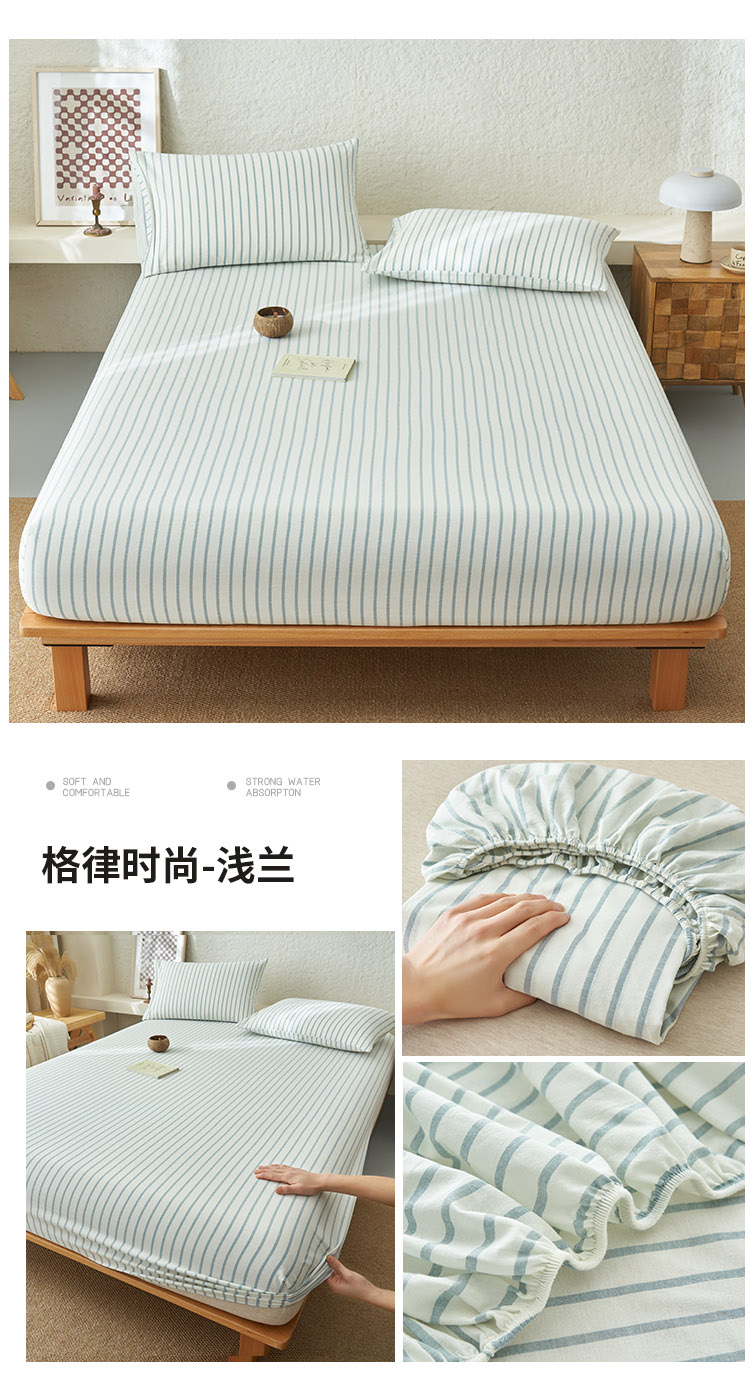早晨家纺 2025新款色织纯棉水洗棉床笠 格律时尚-浅兰