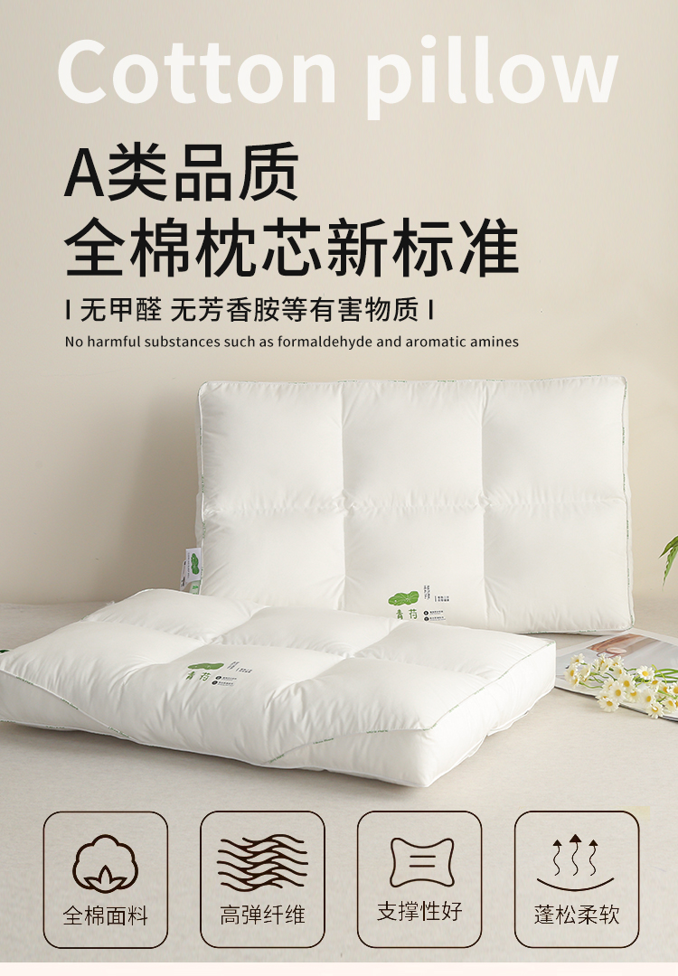 当前位置: 91家纺网 > 商品网购 > 枕头/枕芯/保健枕/颈椎枕 > (总)怡薇格枕芯 2025新款全棉60支青荷六格护颈枕头枕芯