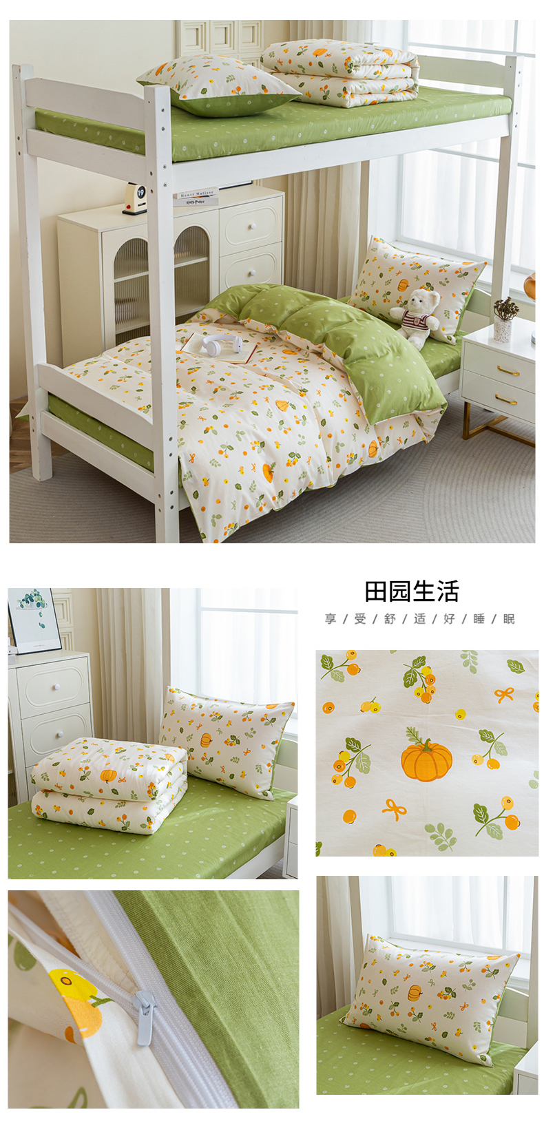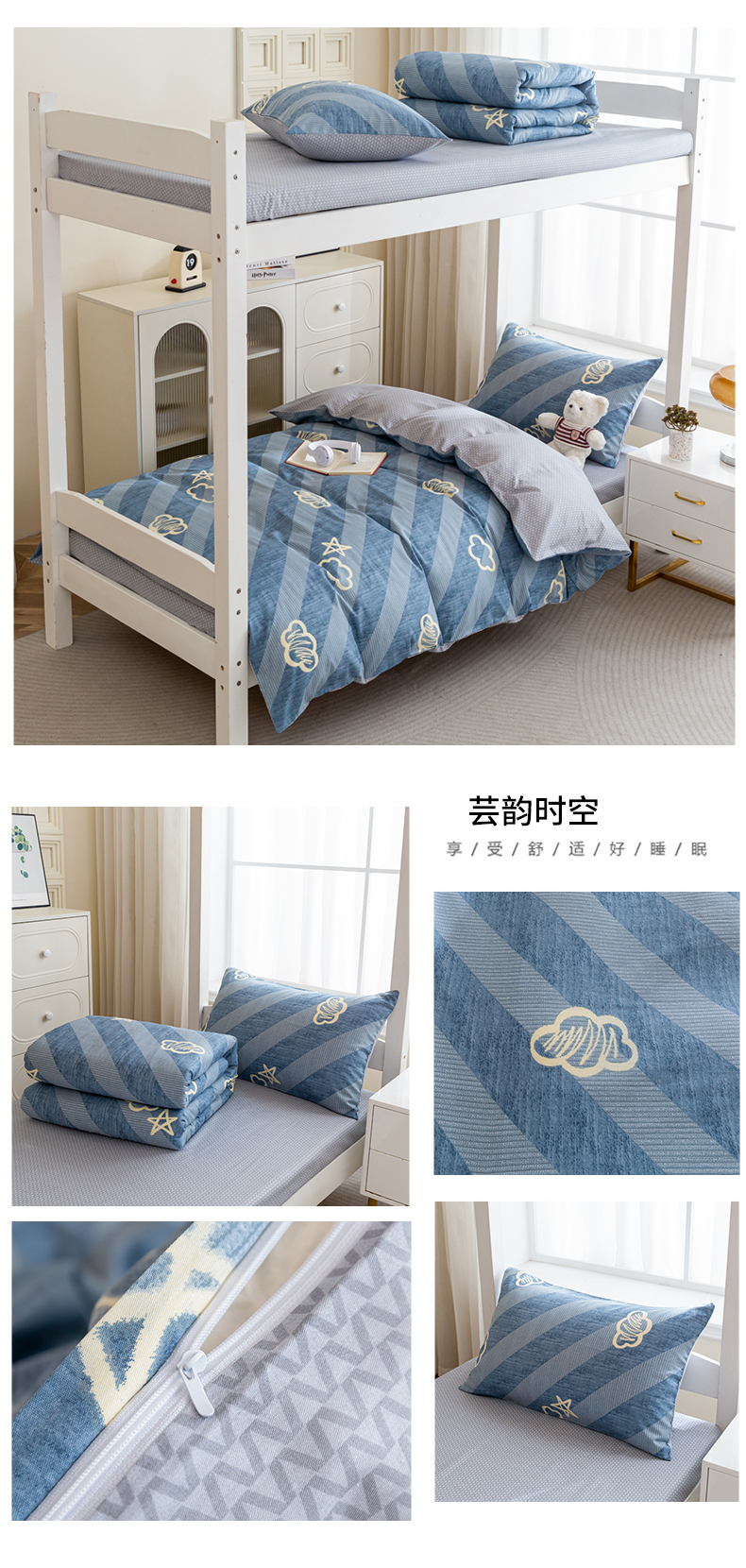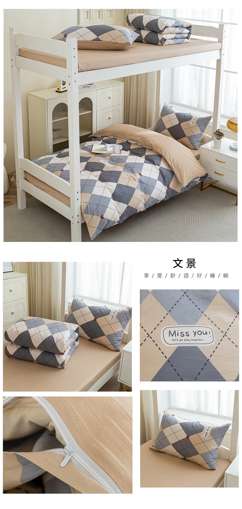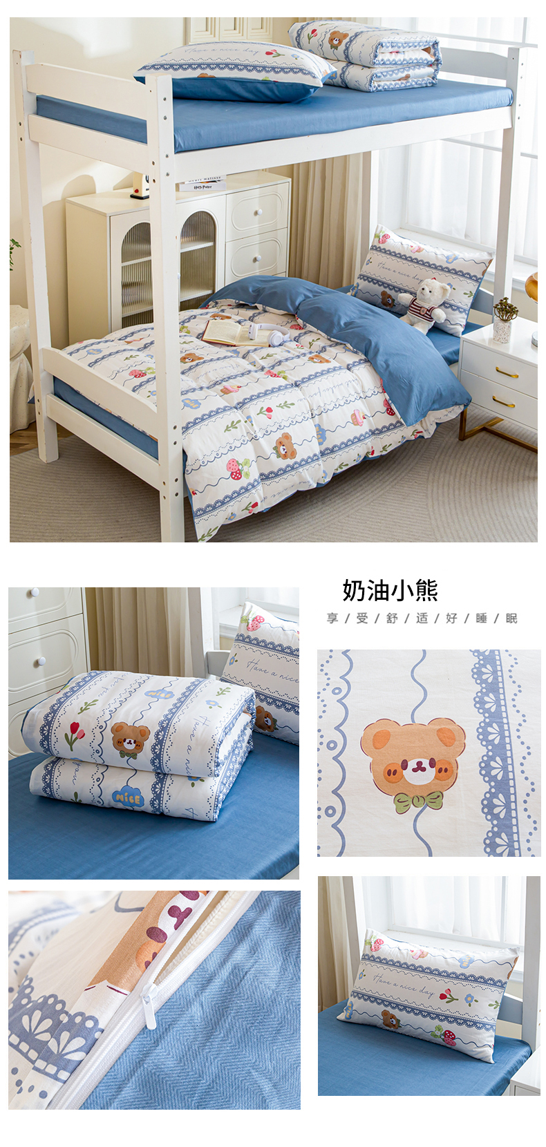 商品名称:(总)简冠家纺 2025新款全棉学生三件套宿舍三件套纯棉学生床垫羽丝绒被子被芯