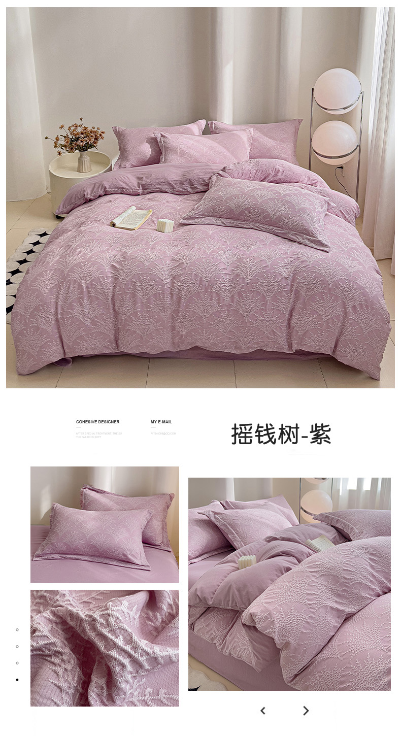当前位置: 91家纺网 > 商品网购 > 床品套件 > 四件套 > 双层纱四件套 > 卡普家居 2025新款A类轻奢双层纱提花四件套摇钱树系列 摇钱树(紫)