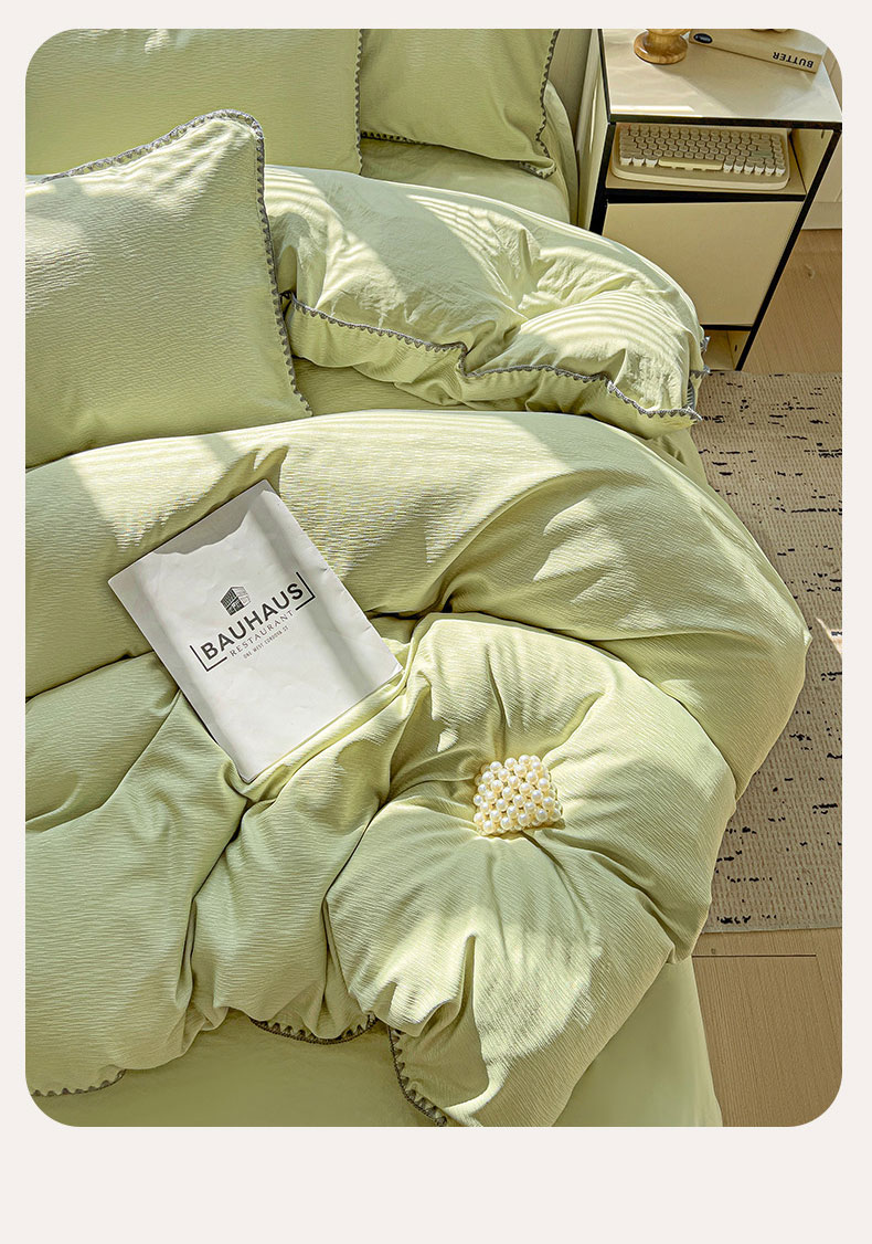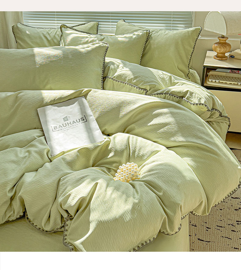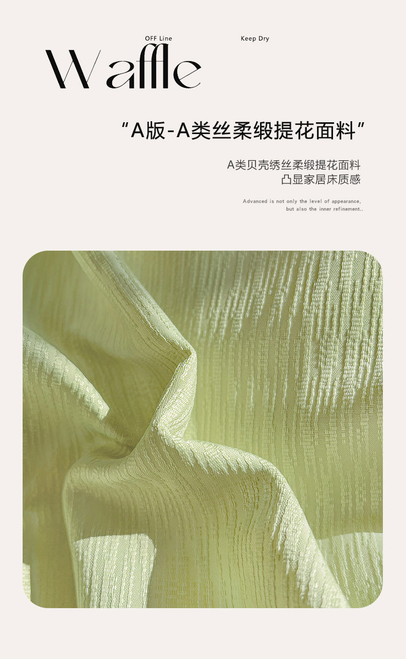 商品名称:卡普家居 2025新款A类轻奢贝壳绣丝柔缎提花被套 丝柔缎-黄绿