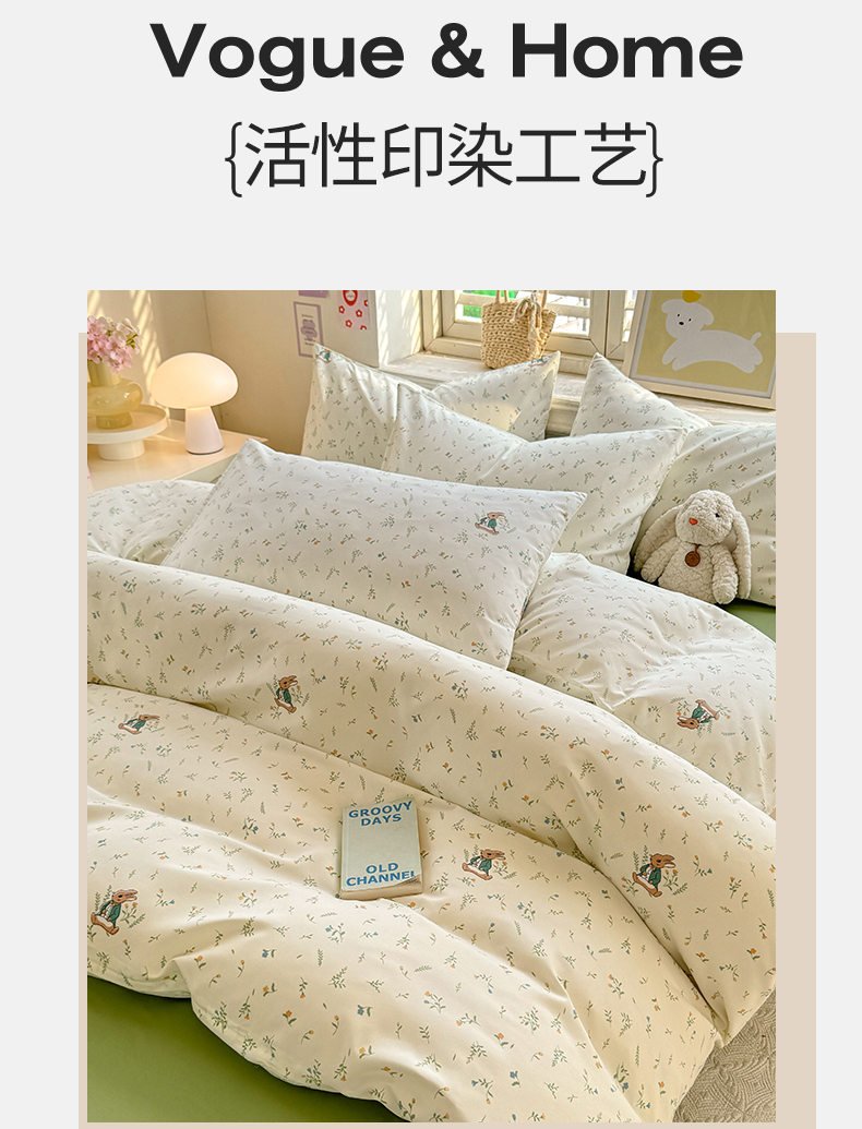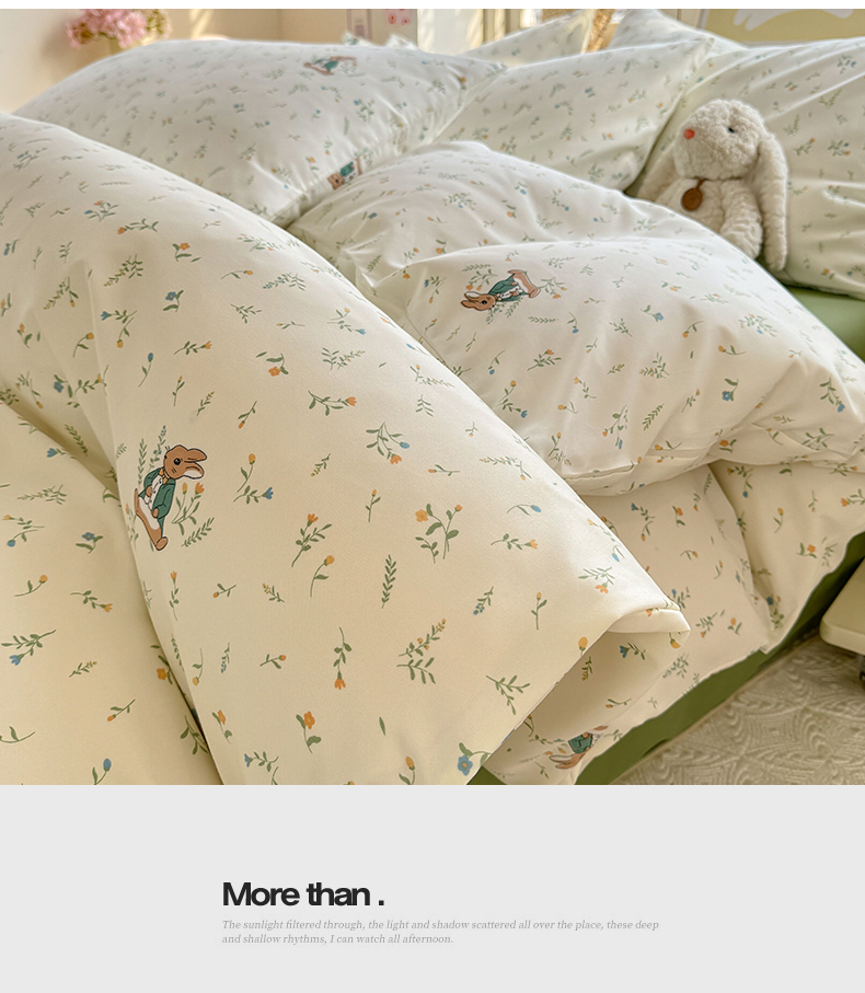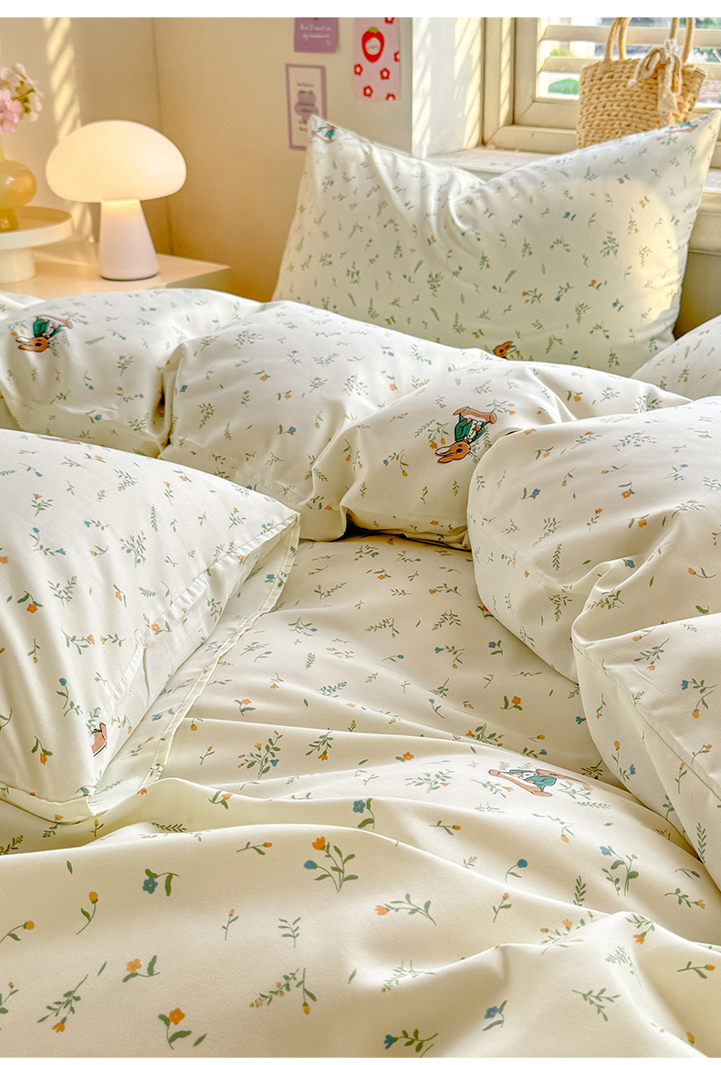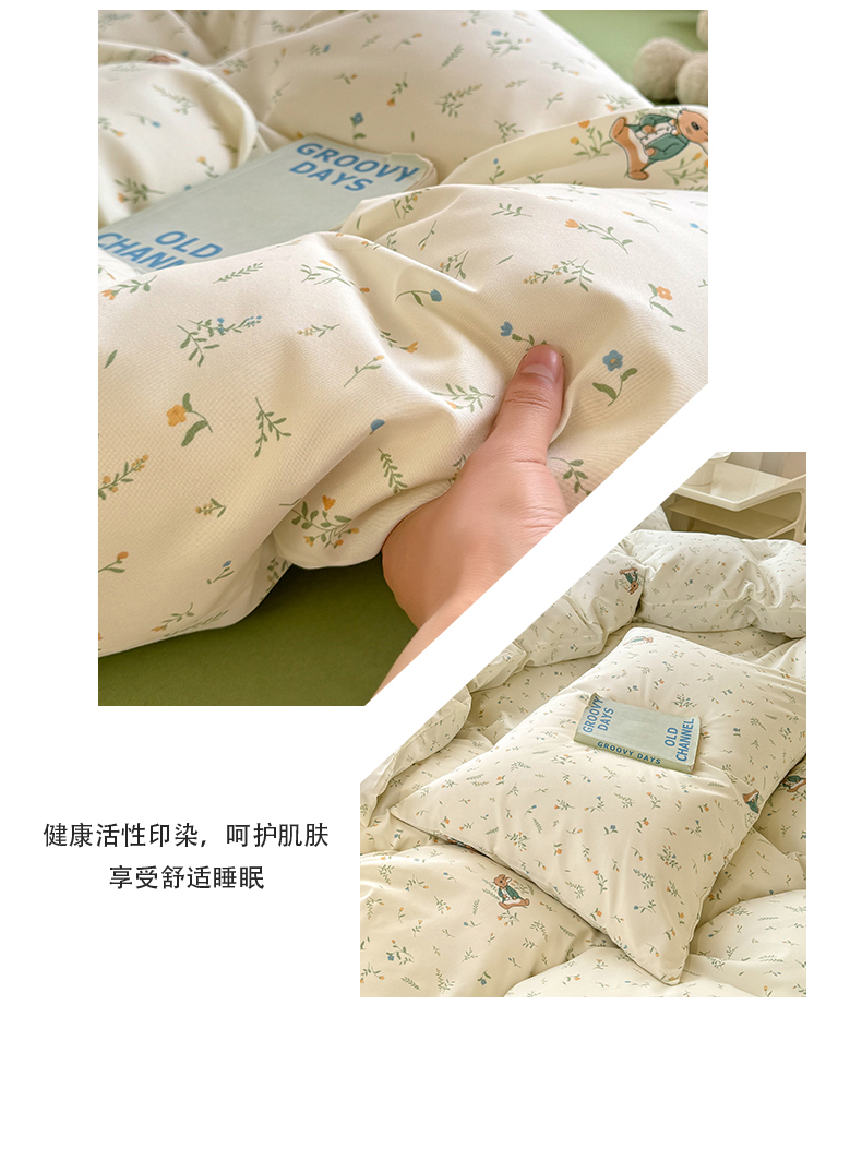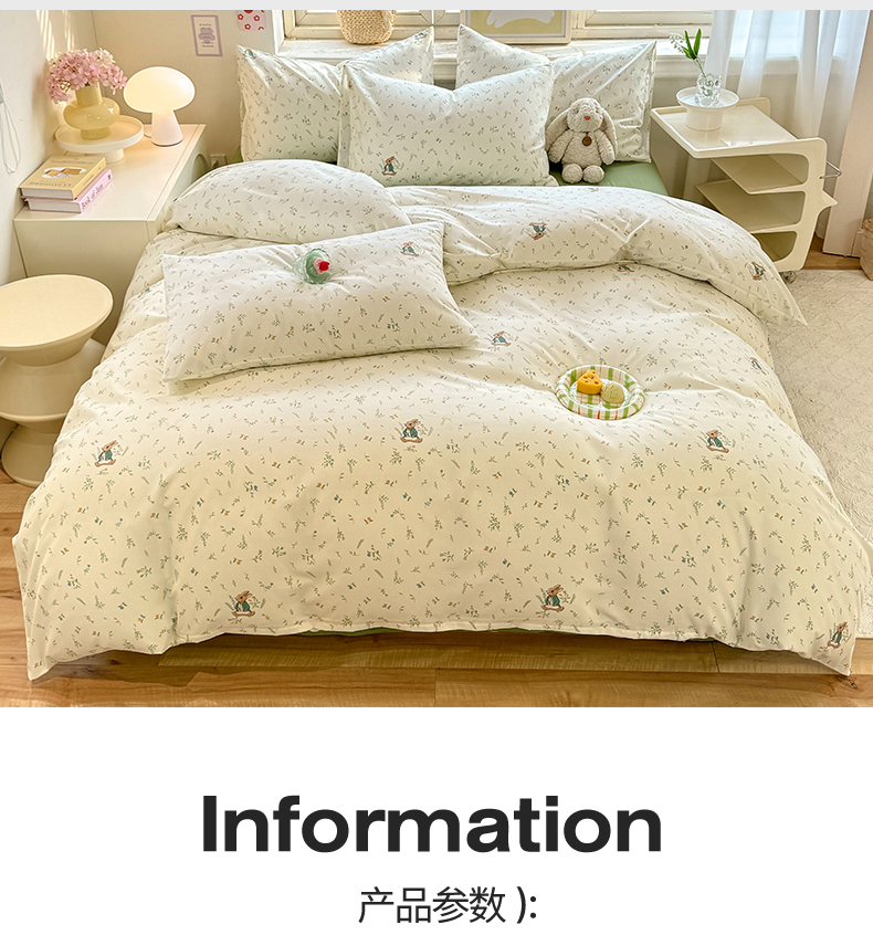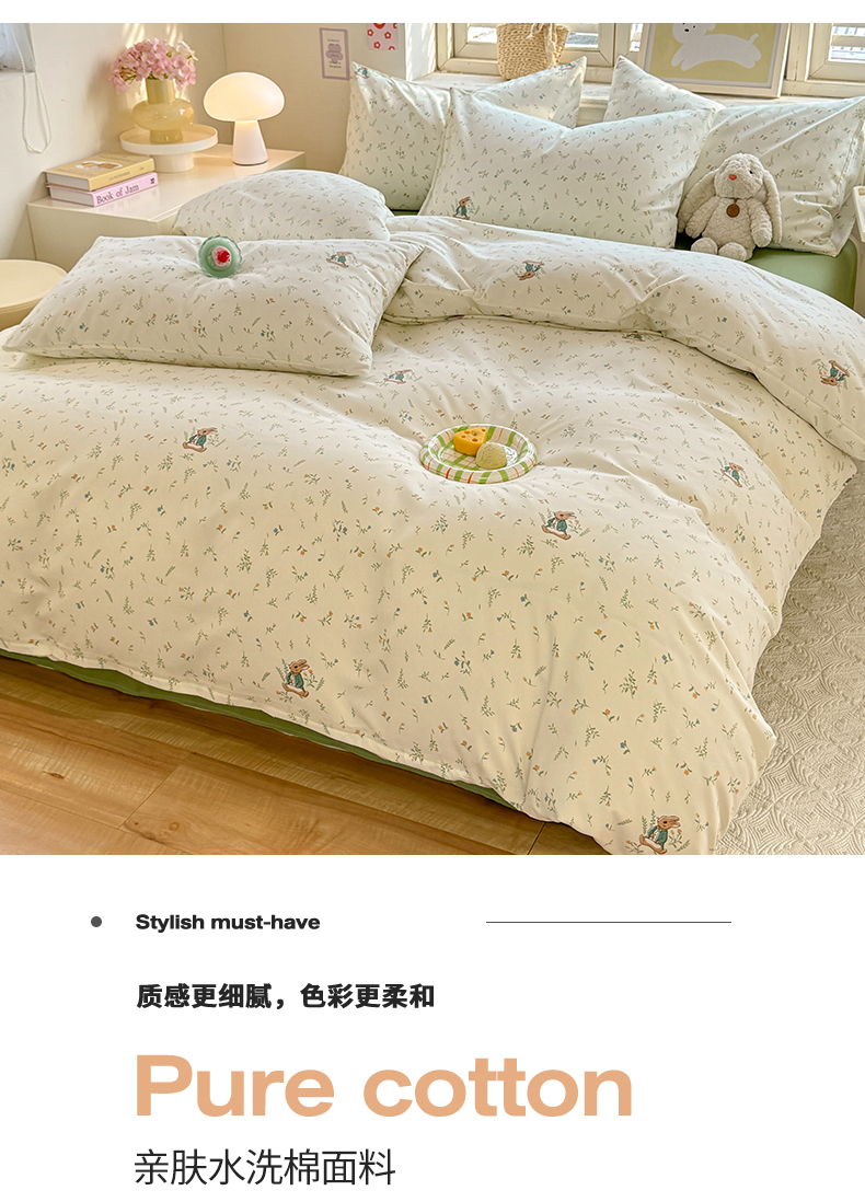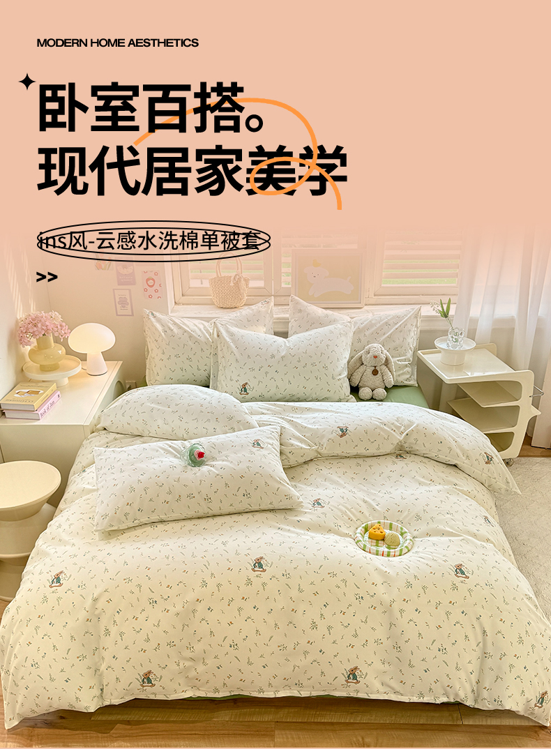 • 91家纺网 家纺一手货源 找家纺 多品家纺 2025春夏新款超柔云感水洗棉单被套 被套单件 叶雨兔