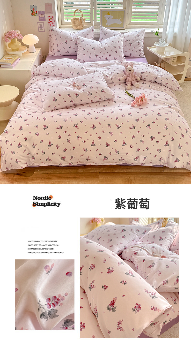 (总)多品家纺 2025新款云感双层纱高克重牛奶绒四件套,甜甜草莓,黛西紫,可爱新新,空谷兰香,蓝大格,猫猫小姐,木兰蝶,七里花香,十里春风,珍妮公主,紫大格