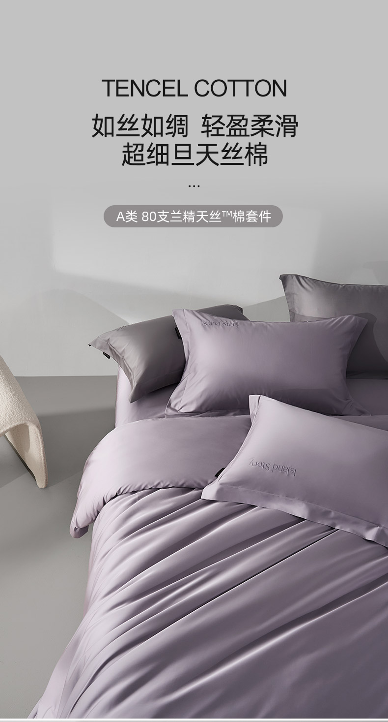 轩和家居 2025新款LF80支超细旦天丝棉四件套 夜泊灰
