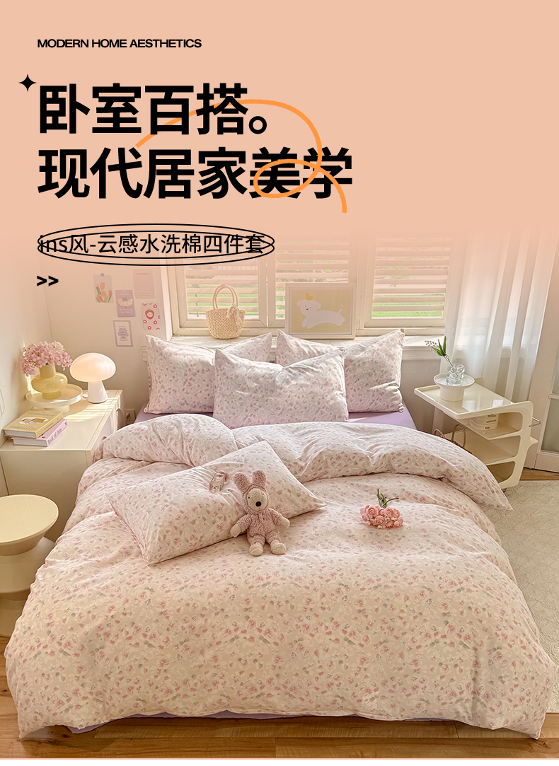 当前位置: 91家纺网 > 商品网购 > 床品套件 > 四件套 > 水洗棉四件套 > 多品家纺 2025春夏新款超柔云感水洗棉四件套 香颂
