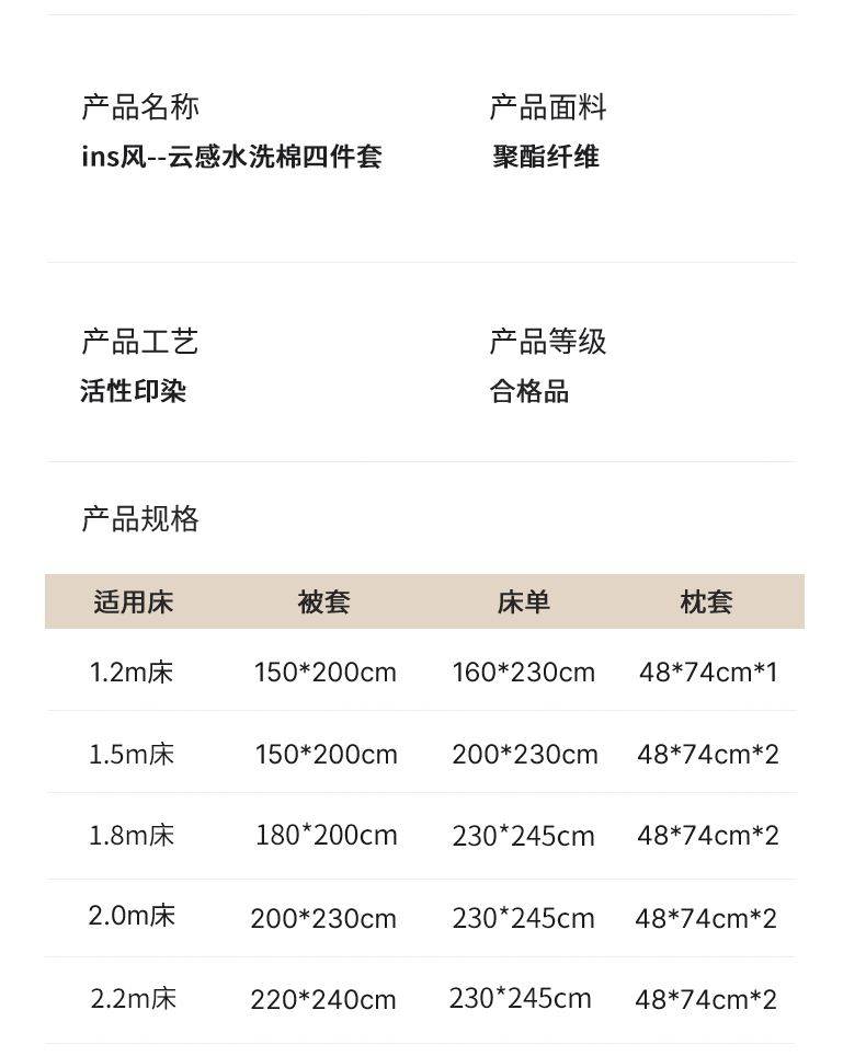 【床笠款】1.8四件套-被套180x220 | ¥48.00 |