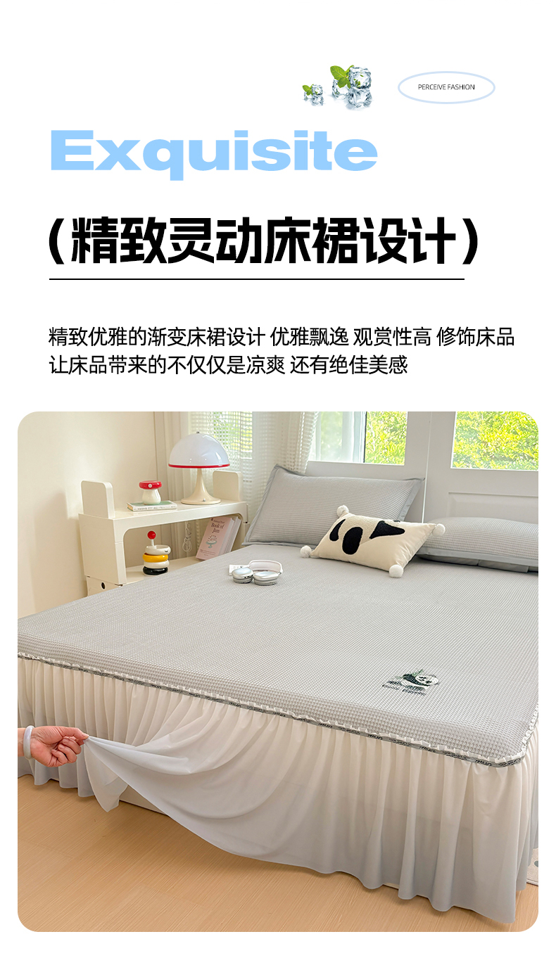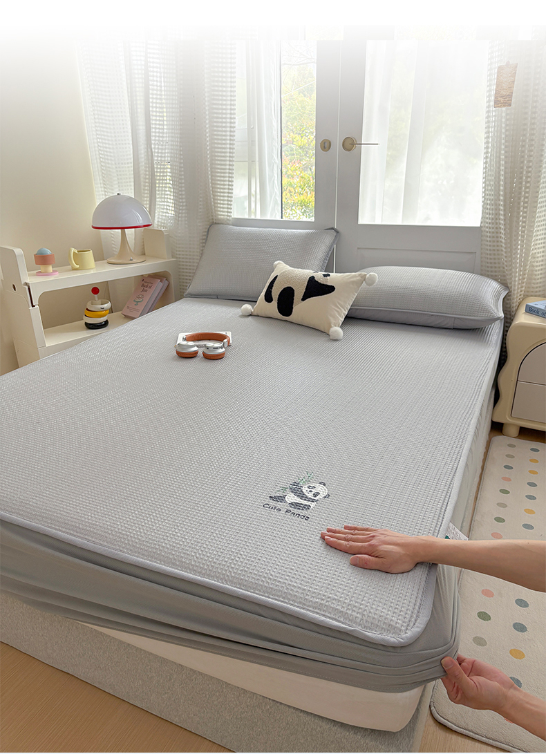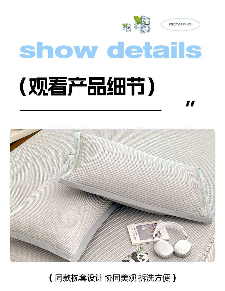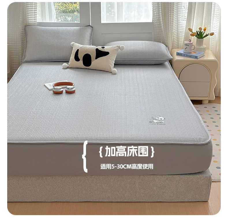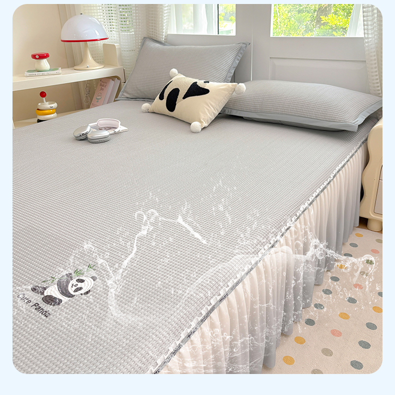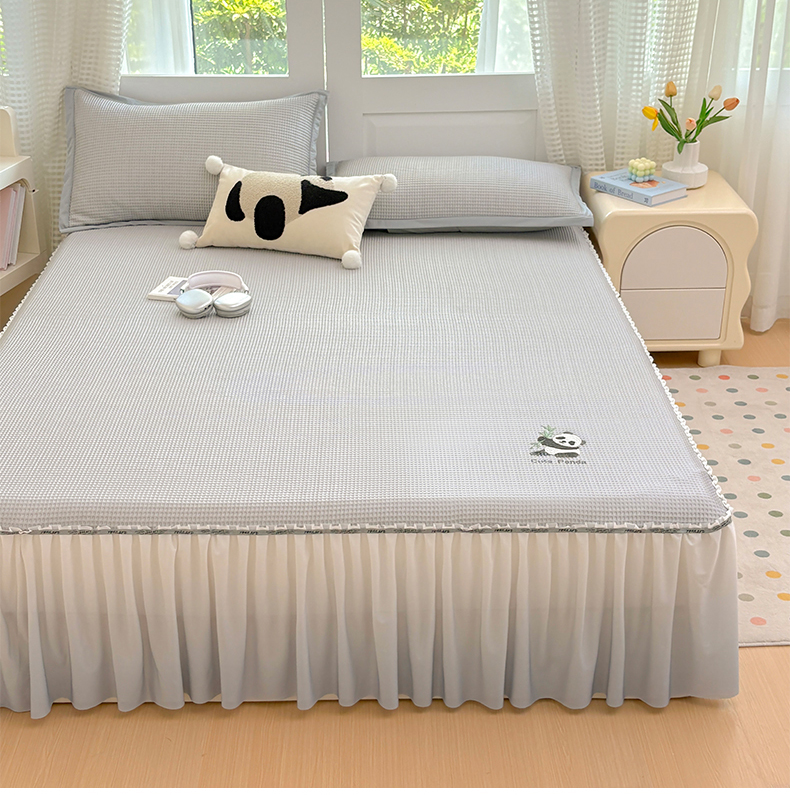 宜派家纺 2025新款高分子凉感丝床裙凉席三件套系列 可爱熊-灰 床裙款