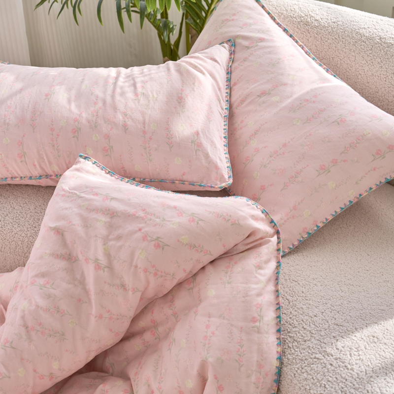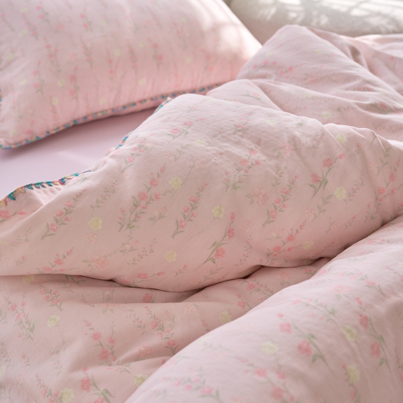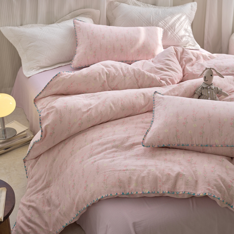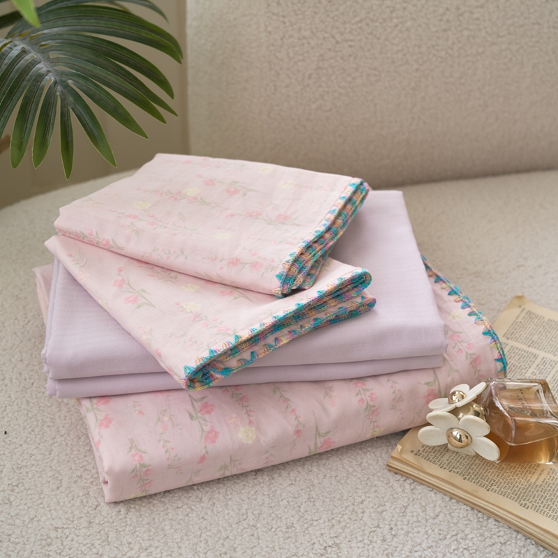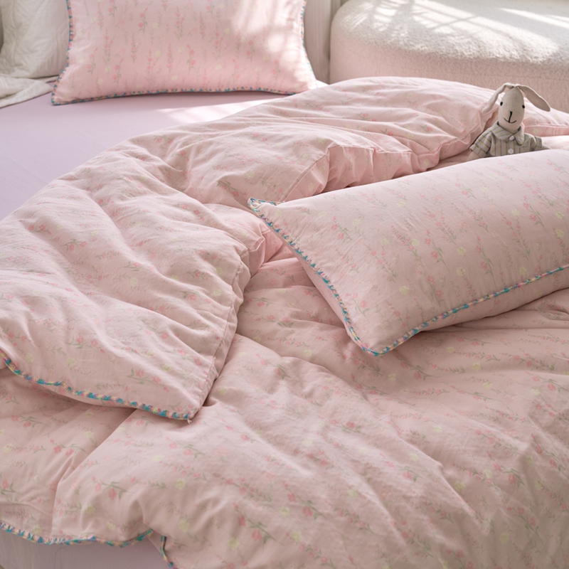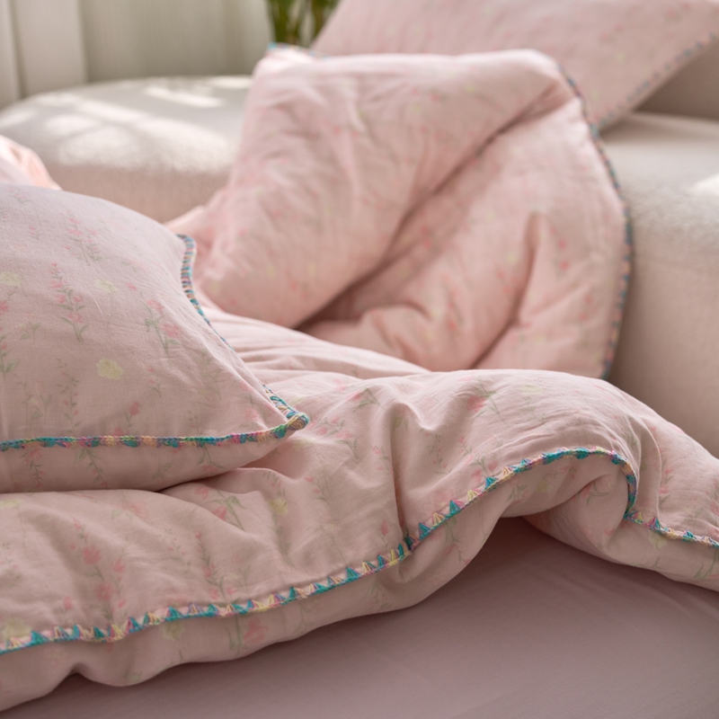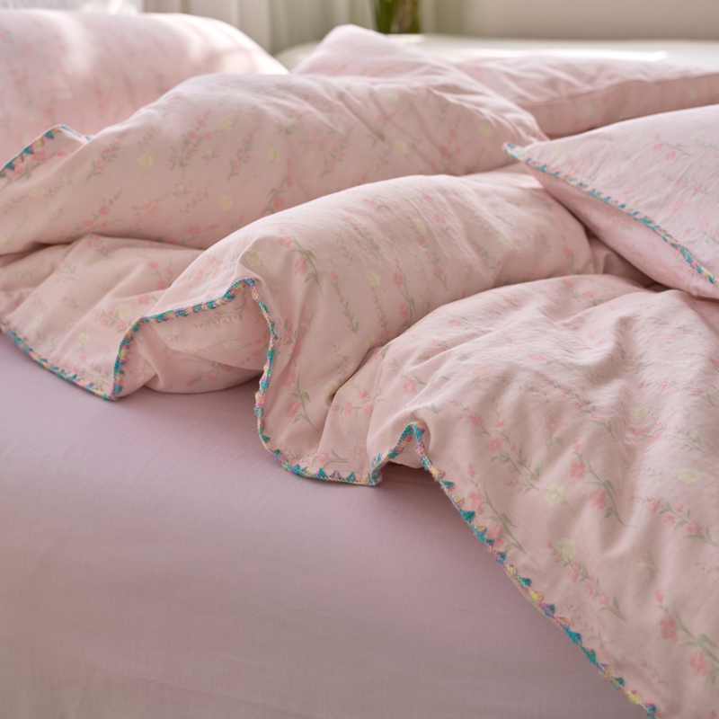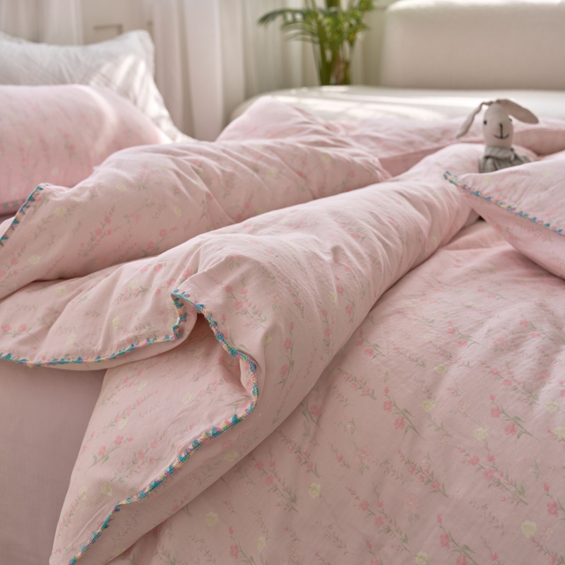 洋铭区(原狠狠爱) 2025新款全棉彩边双层四件套 清香粉花