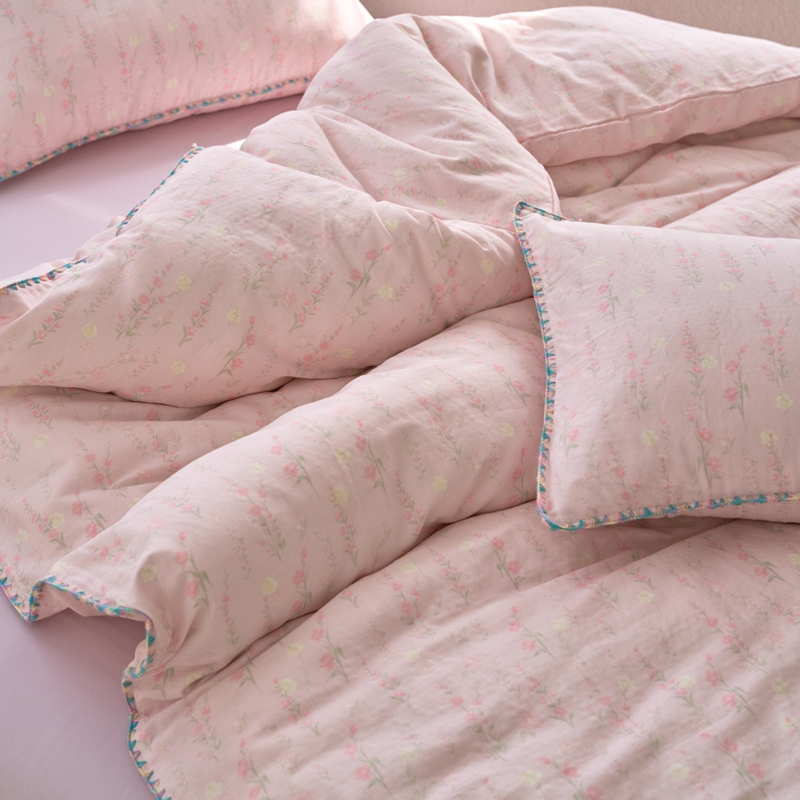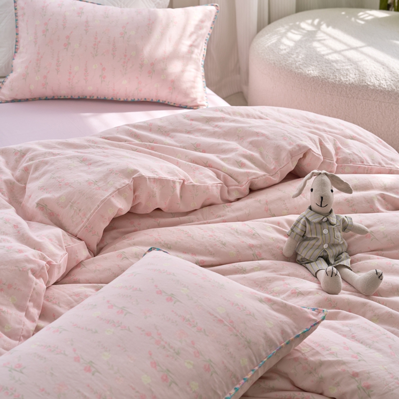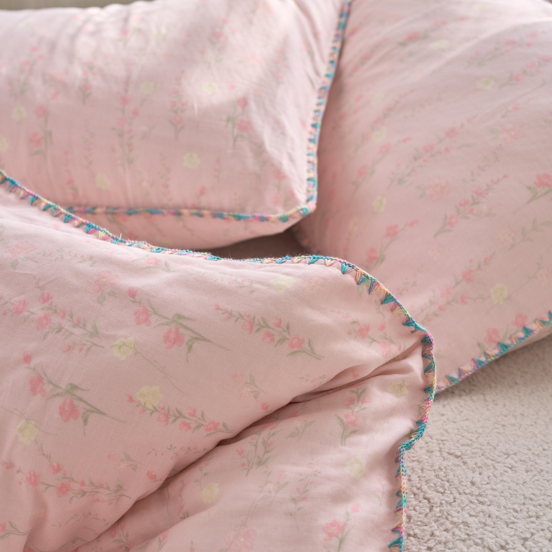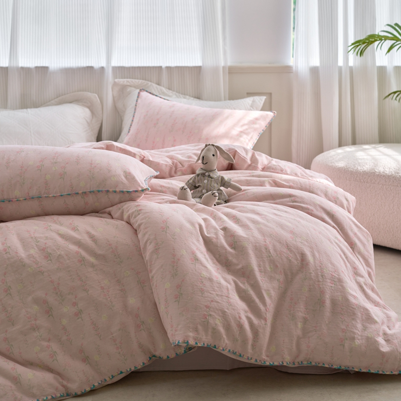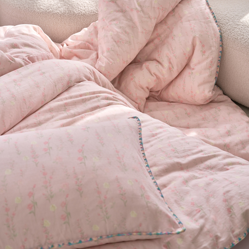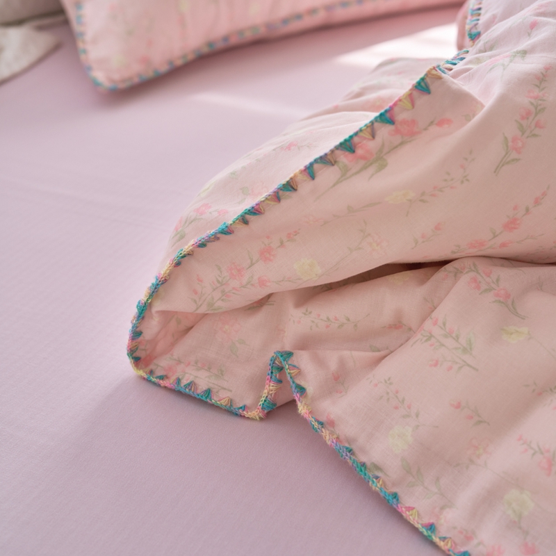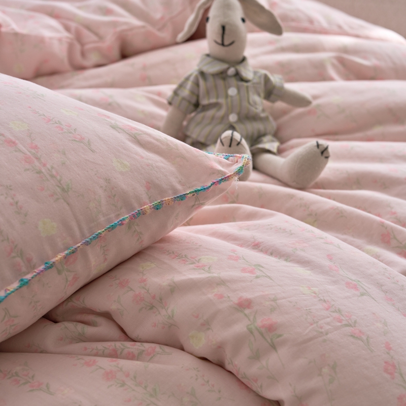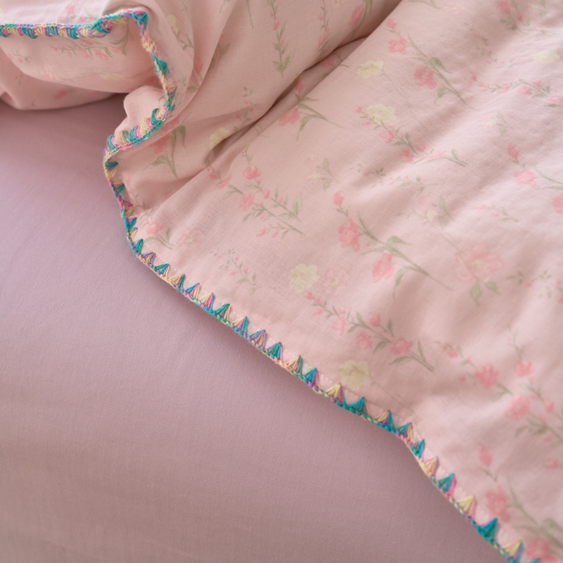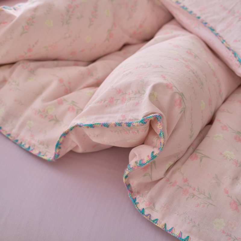 洋铭区(原狠狠爱) 2025新款全棉彩边双层四件套 清香粉花