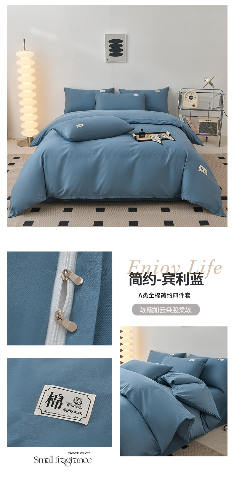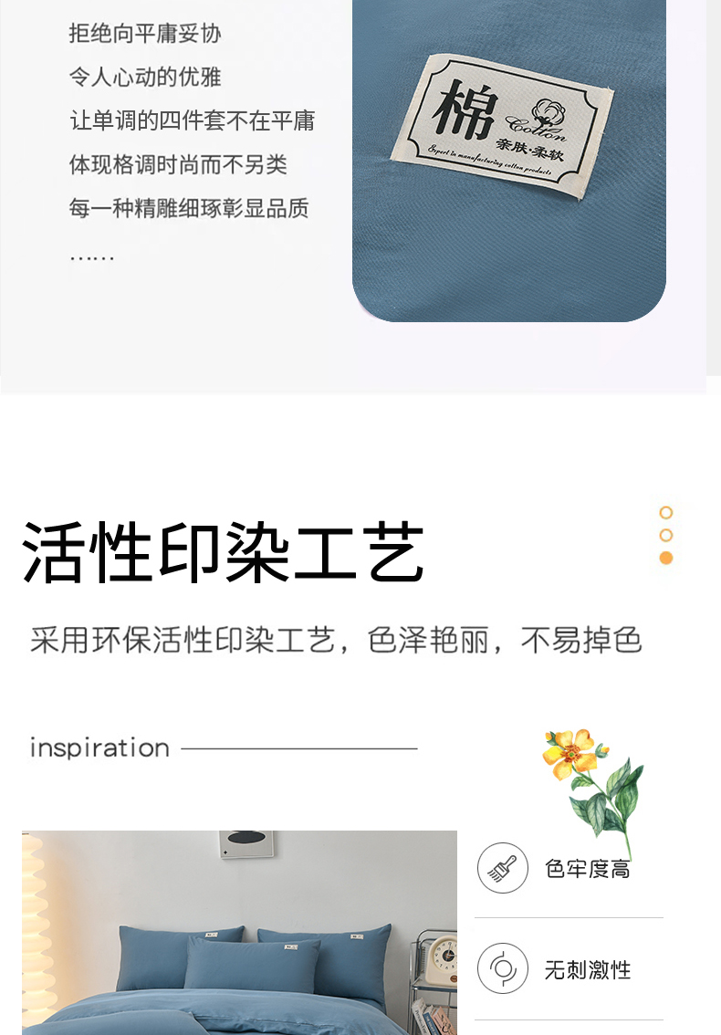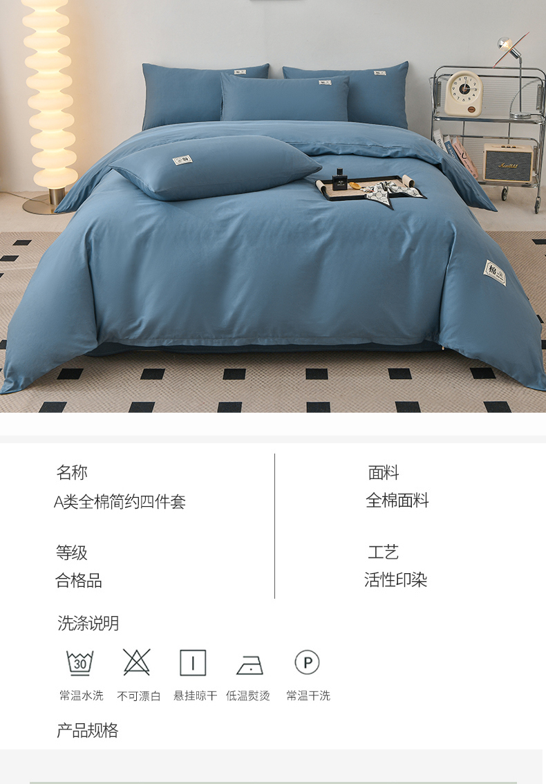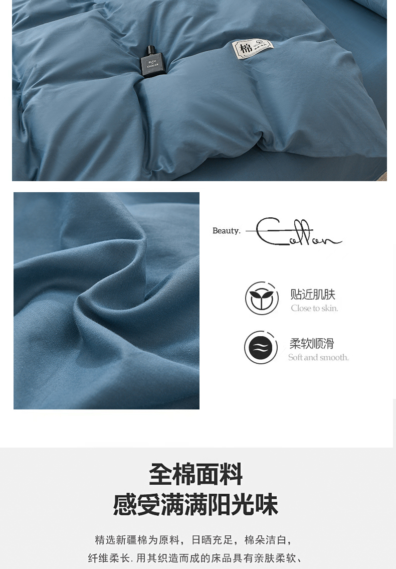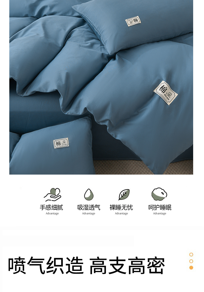商品名称:宇彬家纺 2025直播新款13374全棉母婴级简约轻奢贴画纯色单被套斜纹贡缎新疆长绒贴标款无印风系列 简约-宾利蓝