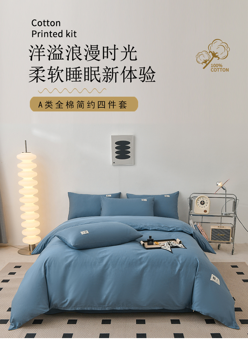 宇彬家纺 2025直播新款13374全棉母婴级简约轻奢贴画纯色单被套斜纹贡缎新疆长绒贴标款无印风系列 简约-宾利蓝